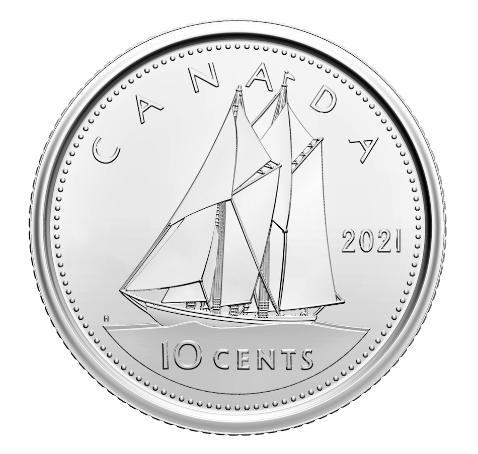 An enduring symbol of Canada's maritime history and heritage, the Bluenose schooner first set sail on the 10-cent coin in 1937.