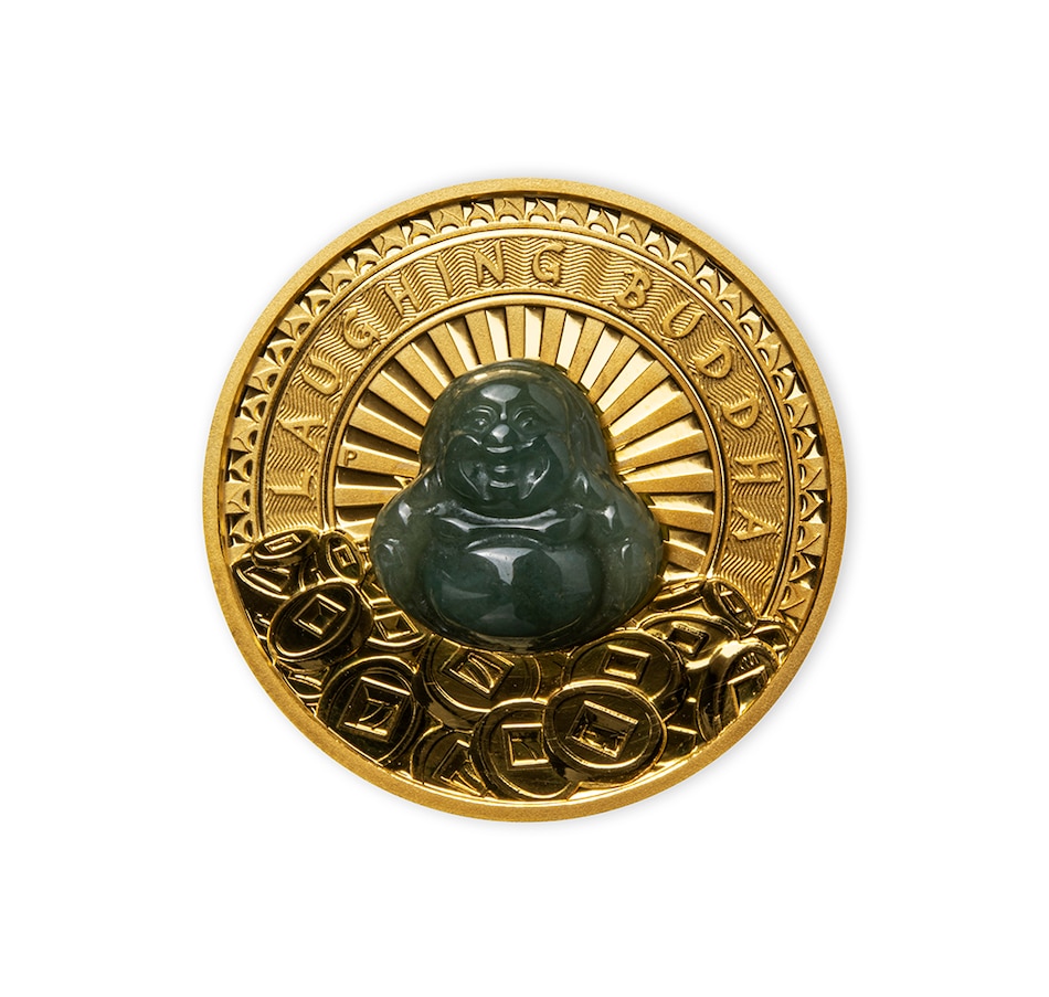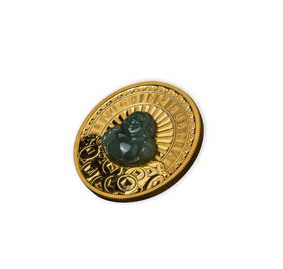 • 2021 $100 Pure Gold Laughing Buddha Coin, with Jade Buddha