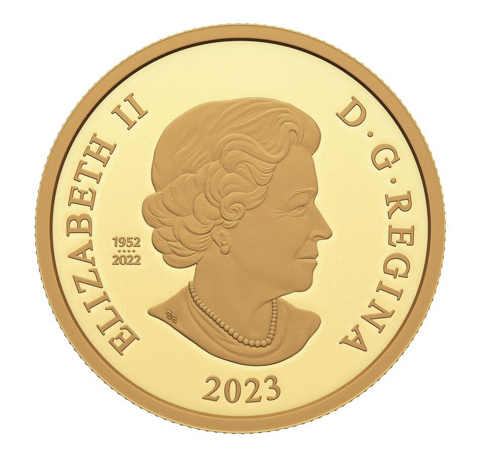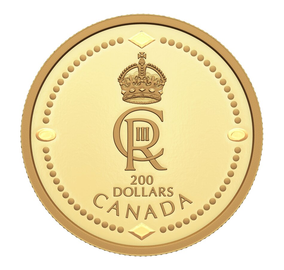 This 2023 $200 fine gold coin is the first one-ounce gold issued by the Royal Canadian Mint to mark the new reign of King Charles III. Its simple but elegant design features His Majesty's Royal Cypher encircled by beads together with the denomination and "Canada." As a historical anomaly, the obverse of this first King Charles III issue still features a posthumous effigy of late Queen Elizabeth, as the Royal Canadian Mint works towards completing a new effigy for the King. Mintage is extremely limited to just 375 coins.