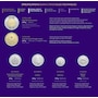 This coin set includes the two-dollar, one-dollar, 25-cent, 10-cent and five-cent regular denominations as well as the collector half-dollar coin. While the reverse designs feature the familiar polar bear, loon, caribou, Bluenose, beaver and coat of arms, the 2023 date has been paired with a posthumous obverse effigy of Queen Elizabeth II, including the double dates of her reign, 1952–2022. The coins come sealed in a protective clear packaging and presented in a royal purple tribute presentation folder.