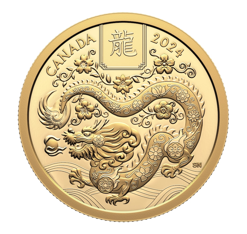 • 2024 $100 Year of the Dragon Fine Gold Coin