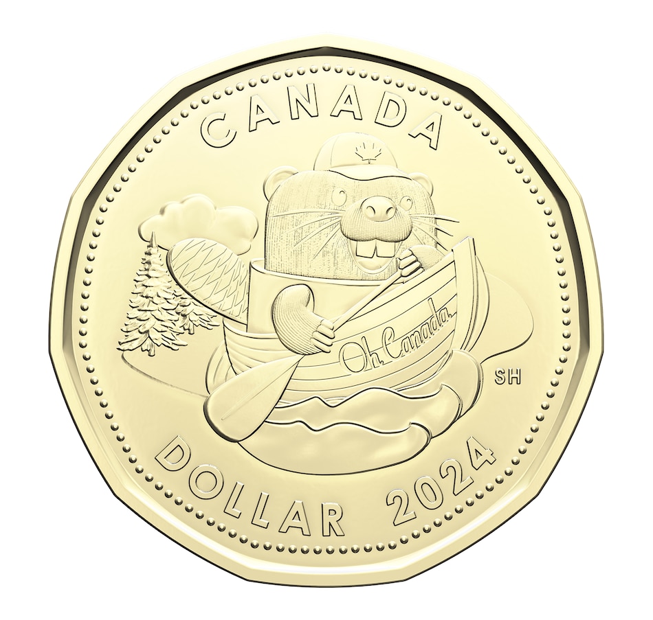 The set includes high quality numismatic uncirculated examples of all the denominations in circulation from the 5-cent coin to $2. The highlight of the set is a $1 coin that is not issued for circulation and cannot be found in any other collection. The coin captures the spirit of Canada through its whimsical depiction of a beaver adventurer paddling a canoe down one of the many rivers in Canada, with a stylized Spruce-fir forest in the background.