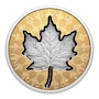 This coin's main design features Walter Ott's iconic sugar maple leaf, unchanged since the first gold maple leaf bullion coin was issued in 1979. The famous maple leaf has been struck using super incuse technology, which gives it an incuse depth of 1.5 millimetres, and now enhanced with platinum plating. The new maple burst background pattern on both sides of the coin further enhances the dynamic appearance, radiating energy and giving the design elements a fresh new appearance.