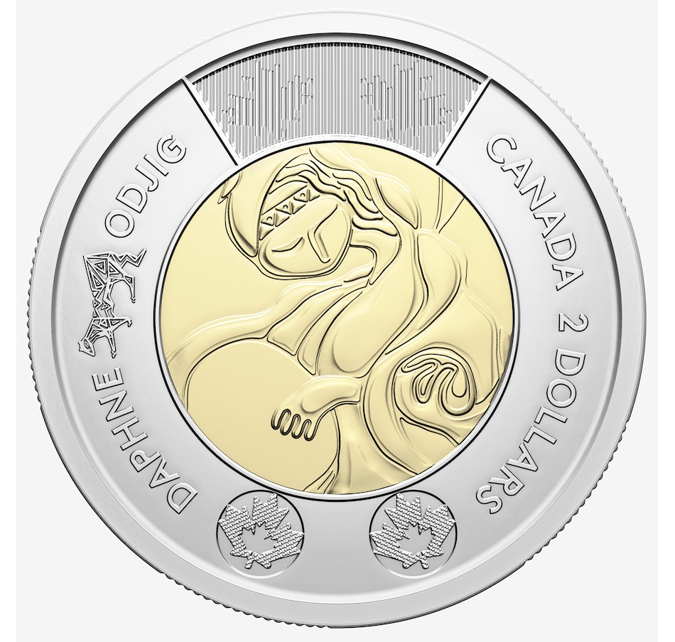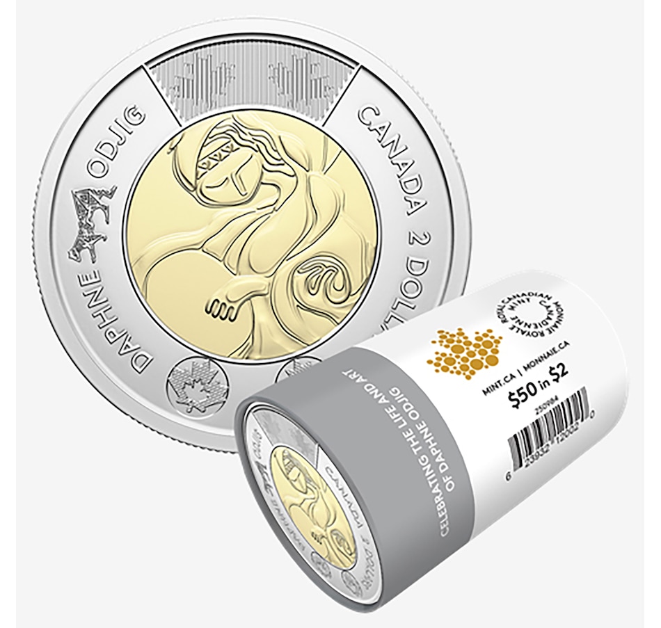 This 2025 $2 commemorative coin celebrates the Life and Art of Daphne Odjig. The special collector-issue wrapped roll contains 25 brilliant uncirculated commemorative two-dollar coins, all with a classic engraved (no colour) centre design.