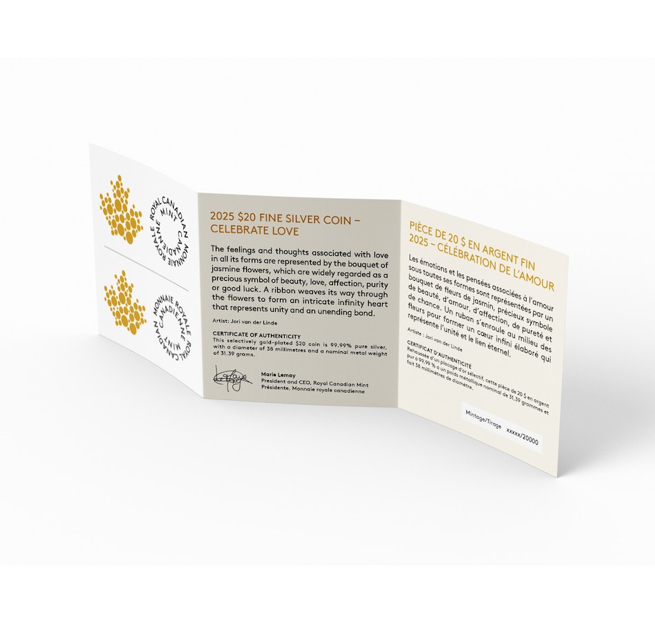 • 2025 $20 Celebrate Love Fine Silver Coin