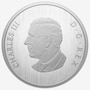 Backed by a woodgrain pattern, the design by Cathy Bursey-Sabourin features a lion depicted in a heraldically stylized manner within a cartouche frame. The lion is presented in a forward-facing pose and engraved in extraordinarily high relief, and the surrounding wreath is engraved in ultra-high relief and consists of floral emblems from the Arms of Canada: the Tudor rose of England, the thistle of Scotland, the shamrock of Ireland, the lily of France, and Canada's maple leaf-along with seed pods, flower buds and maple keys signifying renewal and hope for the future. The woodgrain pattern also appears on the obverse, which features the effigy of His Majesty King Charles III by Canadian artist Steven Rosati.