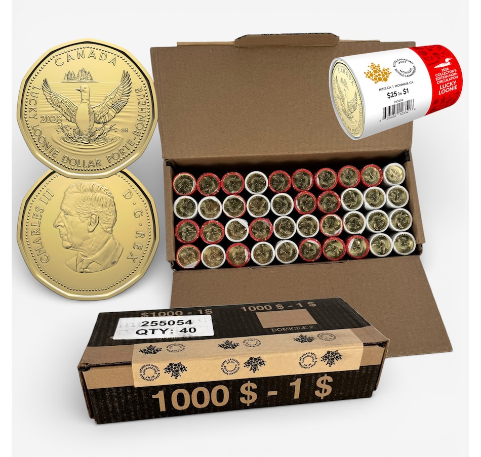 This 2026 Lucky Loonie special wrap roll sealed mint box contains 40 rolls each containing 25 brilliant uncirculated coins. This Lucky Loonie will likely be one of the most elusive of all Canadian loon dollars ever issued—only 15,000 rolls have been minted, with none issued for circulation. A bonus 41st coin roll (separate from the sealed box) is also included, so you can have one roll to open without needing to open the sealed mint box if you choose.