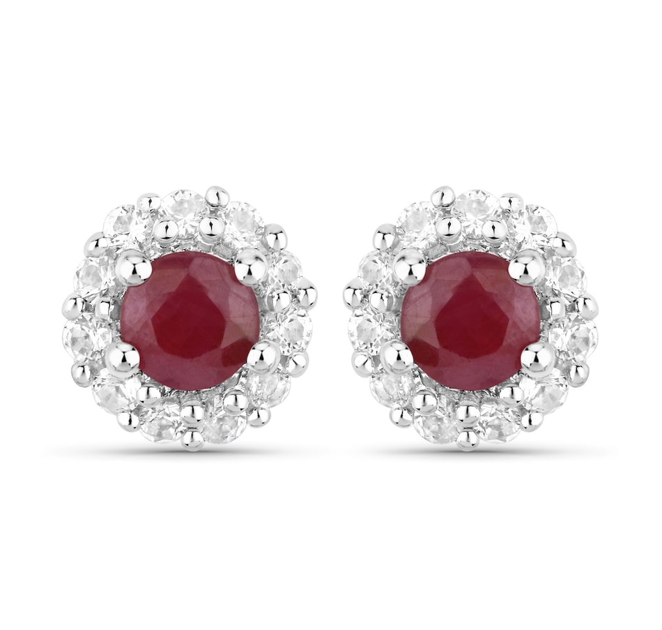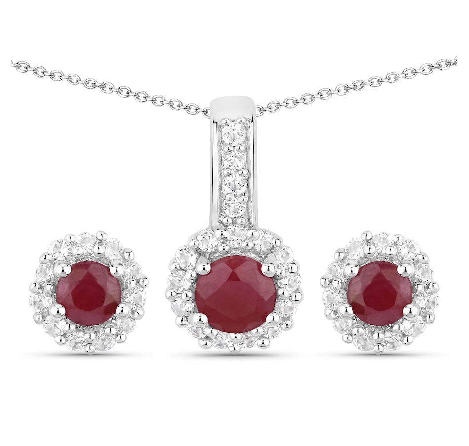 2.17 Carat Genuine Ruby and White Topaz .925 Sterling Silver Jewelry Set Ruby:Round/5.00mm 1/0.65 ctw Ruby:Round/4.00mm 2/0.66 ctw Topaz White:Round/1.50mm 17/0.37 ctw Topaz White:Round/1.50mm 22/0.48 ctw