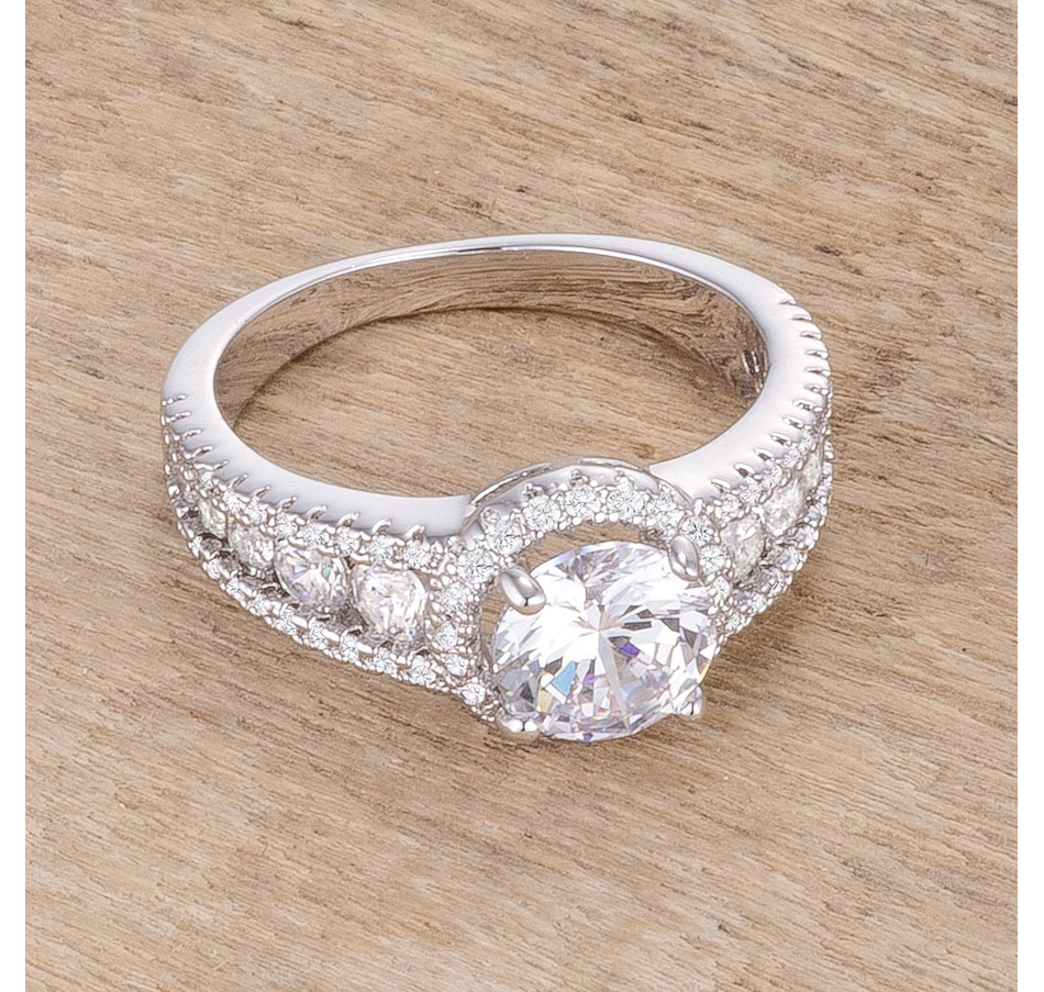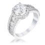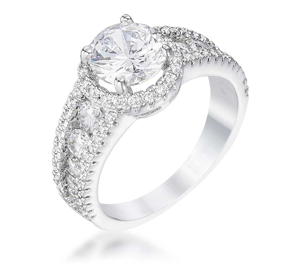 plated halo encrusted CZ ring that comes with a Single Solitaire Center Stone. This ring has over 25 hand-set stones that brings out that stunning sparkle. Our genuine finish is achieved using an electroplating process that coats the item with heavy layers of a close cousin to platinum which gives our jewelry a platinum luster.