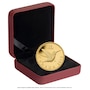 This coin was designed by Canadian artist Claudio D'Angelo, and features a ruby-throated Hummingbird in full flight: a pose that can only be captured by cutting-edge photographic equipment, given that its wings beat more than 50 times per second. Posed at the centre of this clean-lined, highly polished pure gold coin, the "miniscule marvel" raises its dark long-billed head, its wings-each feather engraved in fine detail-fully extended behind it. From the tiny white spot above the bird's lifelike right eye to the downy feathering of its belly and dark-shaded tips of its back and tail-feathers, each detail of the hummingbird's appearance is apparent despite the tiny size of both the coin and its subject.