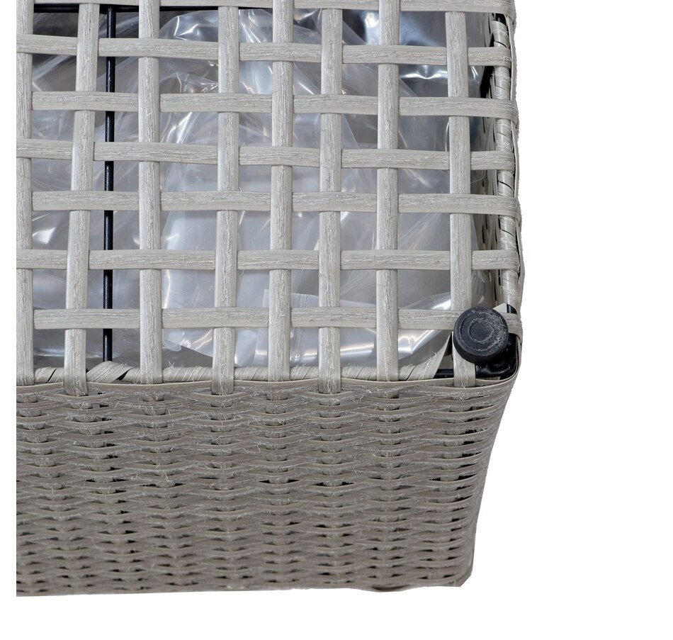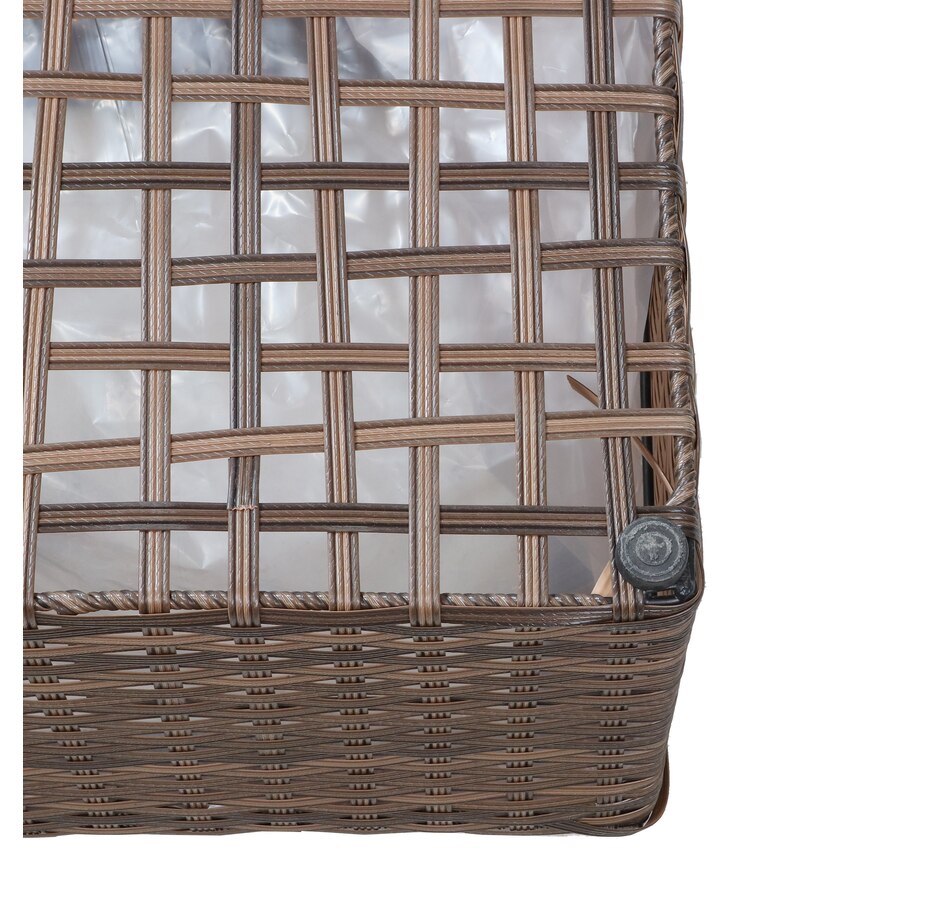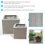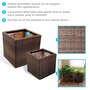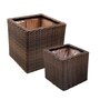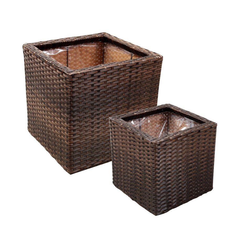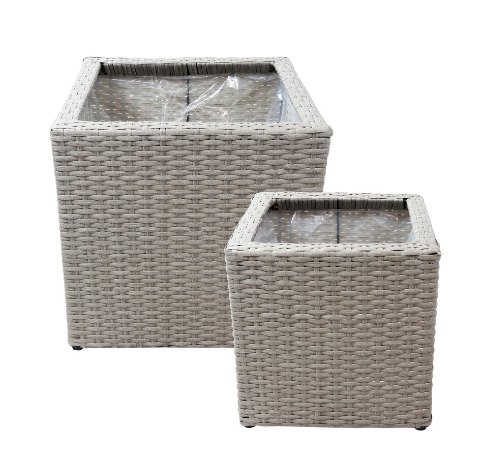 Add texture and charm to indoor spaces with this set of two square planters. Crafted from durable polypropylene, each planter features a woven polyrattan design that mimics the look of natural rattan while offering enhanced durability. Unlike traditional rattan, polyrattan resists chipping and maintains a smooth finish over time. Designed for indoor use, these planters include attached clear poly liners that help contain soil and moisture, making plant care and cleanup more convenient. The set includes one large and one small planter to suit a variety of plant sizes. The large planter measures 14" tall and 14" wide with a soil capacity of 11.9 gallons, while the smaller planter stands 11" tall and 11" wide and holds up to 5.8 gallons of soil. Available in multiple colors, this planter set blends seamlessly with a range of interior styles, from modern to rustic. Whether filled with live greenery or decorative arrangements, these planters serve as functional and stylish additions to living rooms, sunrooms, bedrooms, or other indoor areas.