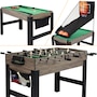 Bring non-stop indoor fun to game rooms or shared spaces with this 5-in-1 multi-game table, designed for both kids and adults. Featuring interchangeable tops for billiards, push hockey, ping pong, foosball, and basketball, this combo game table offers a range of classic games in a single, space-saving design. Built from durable MDF with black powder-coated steel adjustable feet, the table is constructed to handle active gameplay over time. Each game top fits securely for a stable playing surface, while the sturdy frame ensures long-term use. All accessories needed to play are included, such as paddles, balls, nets, and more—everything required to get each game started right away. Whether used in a rec room, basement, or shared family area, this table provides hours of competitive entertainment for all ages. With a compact footprint and multiple game options, it's a practical solution for keeping groups engaged without needing multiple pieces of equipment.