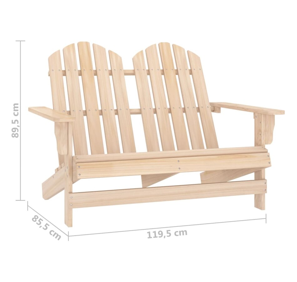 Relax in the garden or on the patio in this comfortable wood Adirondack chair! & Nbsp; 2 2-seater garden chair, made of solid fir wood, has a robust and stable setting. It is weather resistant and easy to maintain. The ergonomic structure also ensures optimal comfort. & Nbsp; & nbsp; Note: In order to extend the lifespan of your outdoor furniture, we recommend that you clean them regularly and do not leave them outside without unnecessarily protection.Nettotage: Use a soft soapy solution.Stocking: if possible, Store in a cool and dry place inside. If the product is stored outside, protect it with a waterproof cover. Wipe and dry the excess water or snow from the flat surfaces after the rain or a snowfall. Allow sufficient air circulation to avoid humidity -related damage.