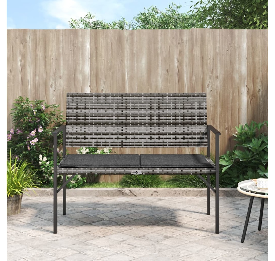 Enjoy a pleasant moment in your outdoor space with this 2-seater garden bench! It is a perfect addition to your garden and patio, creating a lasting impression! Durable Material: Resin wicker, also known as poly rattan, is weather resistant and easy to clean. It stays beautiful outdoors for a long time. It is more economical than other materials, while providing excellent quality, convenience and aesthetic appearance. Sturdy and stable frame: The steel frame makes the garden seat sturdy and stable for daily outdoor use. Comfortable Seating: The outdoor bench is designed with backrest and armrests to give you a comfortable sitting experience.Soft Cushion: The well-padded cushion provides comfort during your sitting time. Note: To keep your outdoor furniture looking great, we recommend protecting it with a waterproof cover.