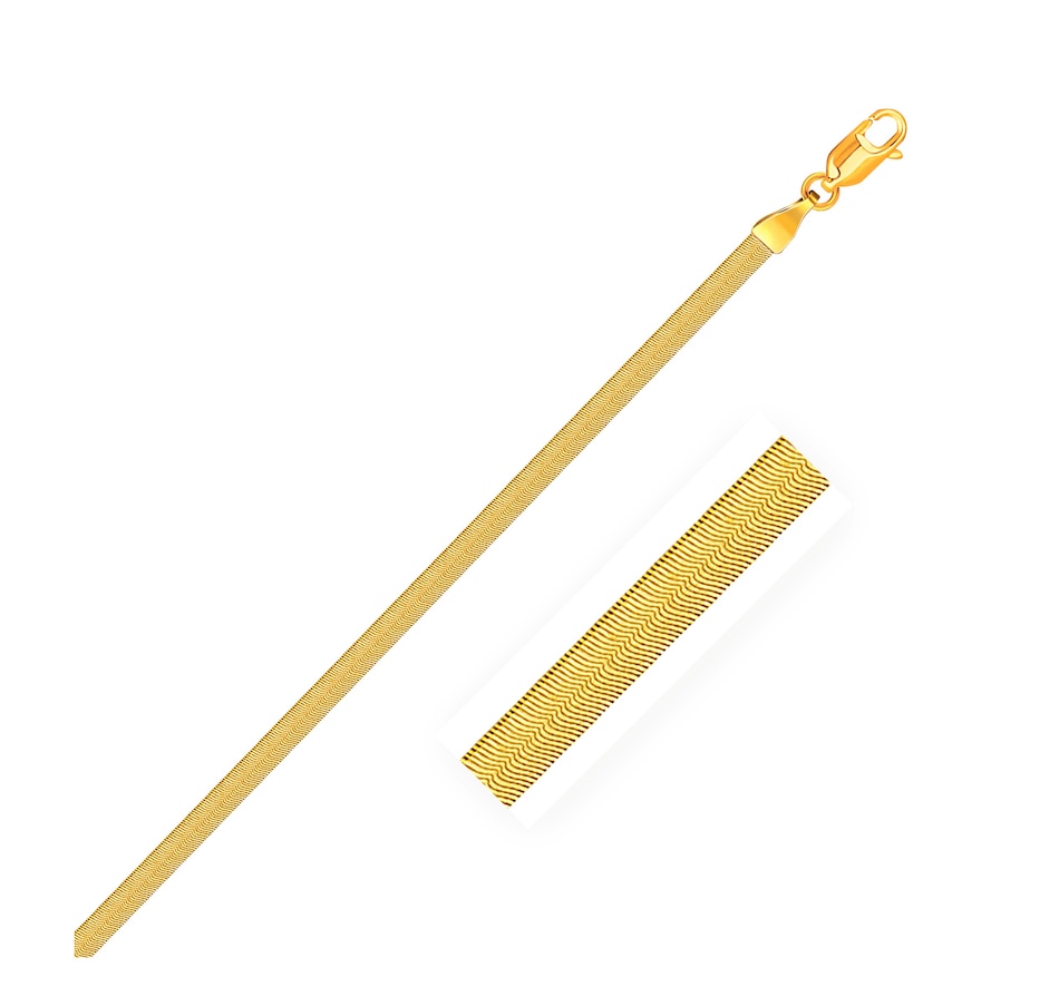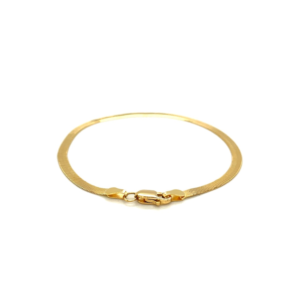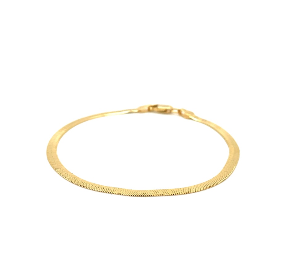 This super flex herringbone bracelet comes in 14k yellow gold and has a width of 3.0 millimeters. Secured with a lobster clasp.
