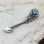 Uniquely designed nipple jewelry with feather arrow‚Partial Black plating on arrow for an antique look‚Oval shaped Aqua color Enamel on feather‚Antique Silver plating on heart shaped arrowhead‚Thickness : 14GA | 1.6mm‚Length : 9/16" | 14mm‚Ball Size : 5mm‚Arrowhead Size : 6x6mm‚Feather Size : 12x10mm‚Material : 316L Stainless Steel, Enamel