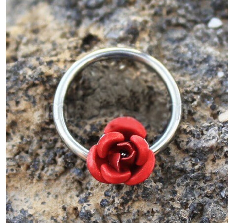 Snap-in Captive Bead Ring / Septum Ring‚Red metal rose‚Versatile jewelry can be worn as Captive Bead Ring or Septum Jewelry‚Easy snap-in jewelry‚Ring Thickness : 16GA | 1.2mm‚Ring Diameter : 3/8" | 10mm‚Rose Size : 7 x 7mm‚Material : 316L Stainless Steel, Zinc Alloy
