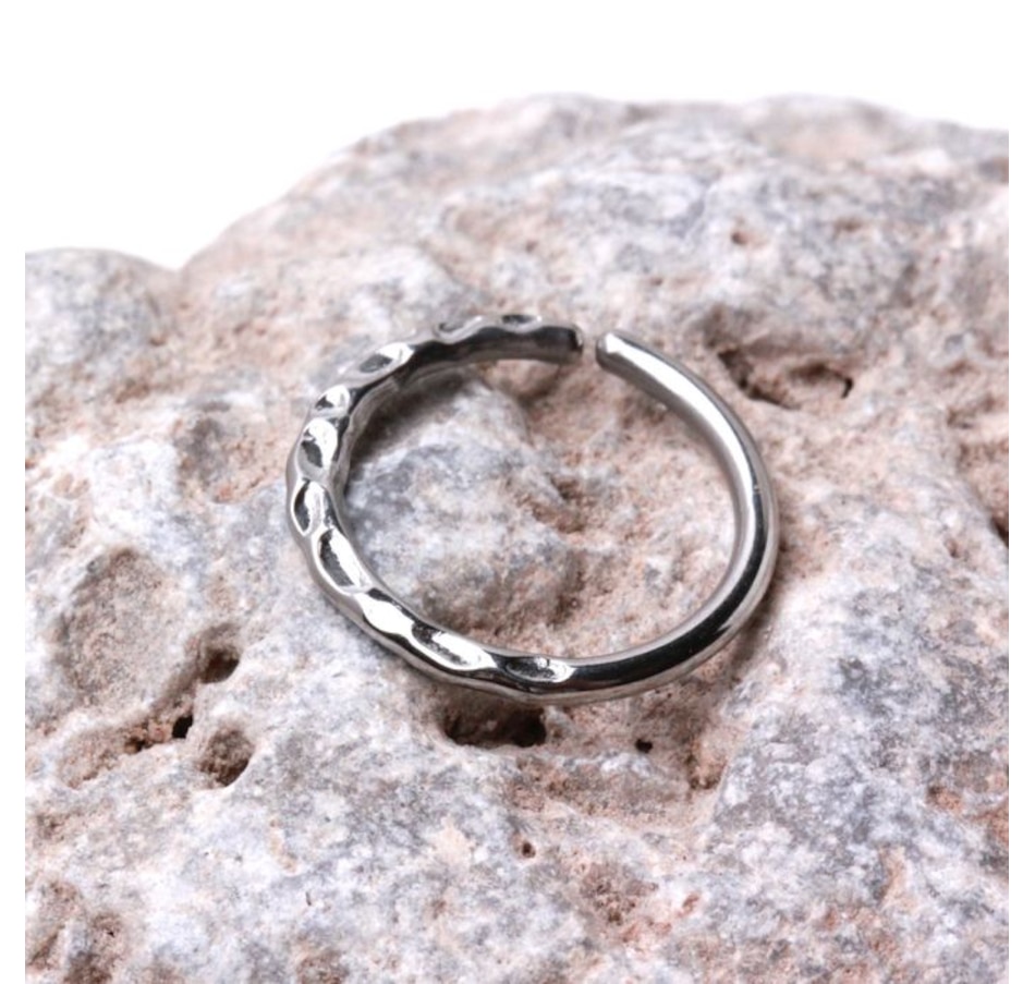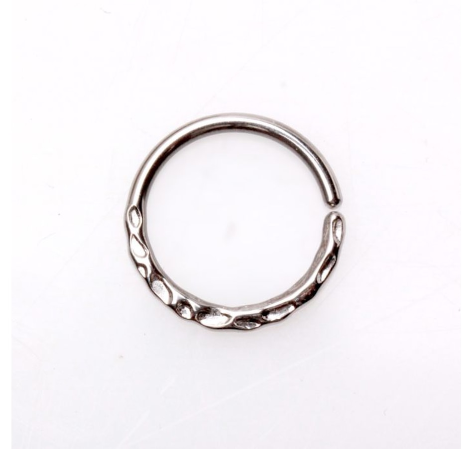 Seamless Ring / Septum Ring with Uneven Look Surface‚Jewelry features uneven / irregular look surface‚ ‚Versatile jewelry that can be worn as Lip Ring, Septum Ring, Cartilage Earring and more‚Ring Thickness : 16GA | 1.2mm‚Ring Inner Diameter : 3/8" | 10mm‚Material : 316L Stainless Steel‚ *Sold in Singles
