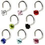 316L Surgical Steel Screw Nose Ring with Prong Set Gem.Mirror finished Implant Grade 316L Surgical Steel screw Nose Ring with 3mm prong set Cubic Zirconia.Thickness : 18GA & 20GAGem Size : 3mmAvailable in 8 colors.
