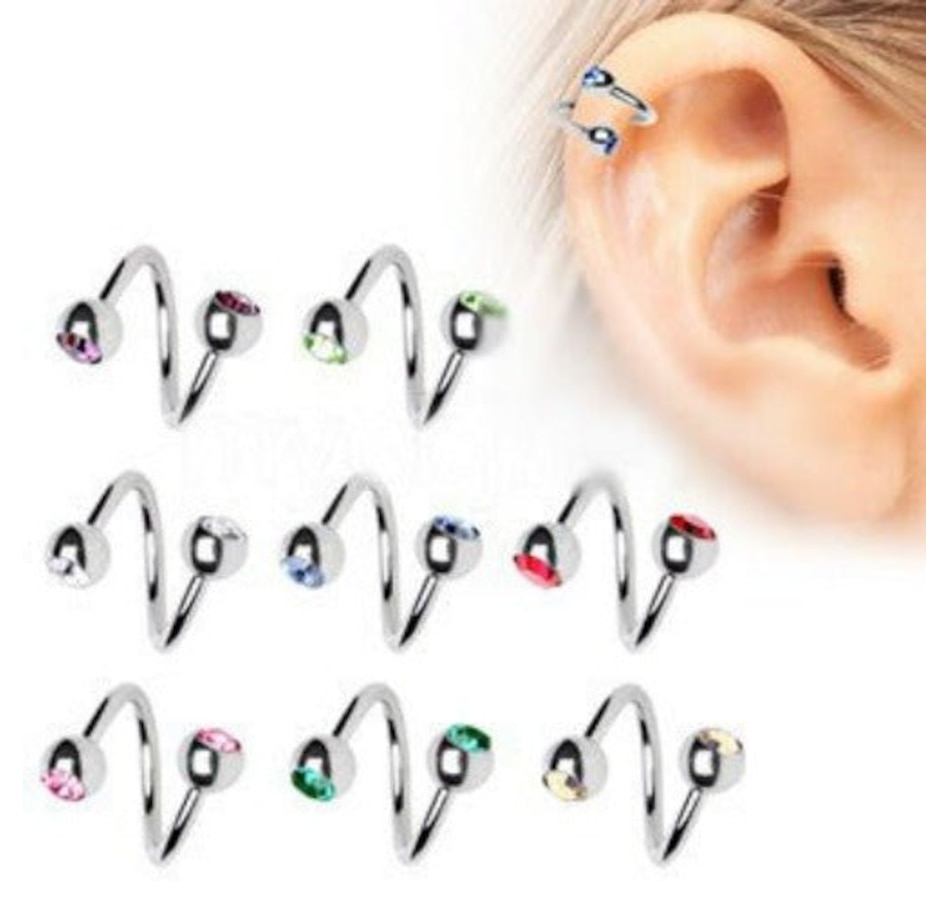 316L Surgical Steel Twist with Gemmed Balls.Fancy Twist with sparkling cubic zirconias on both ends.Thickness : 16GALength : 3/8" | 10mmBall size : 4mm