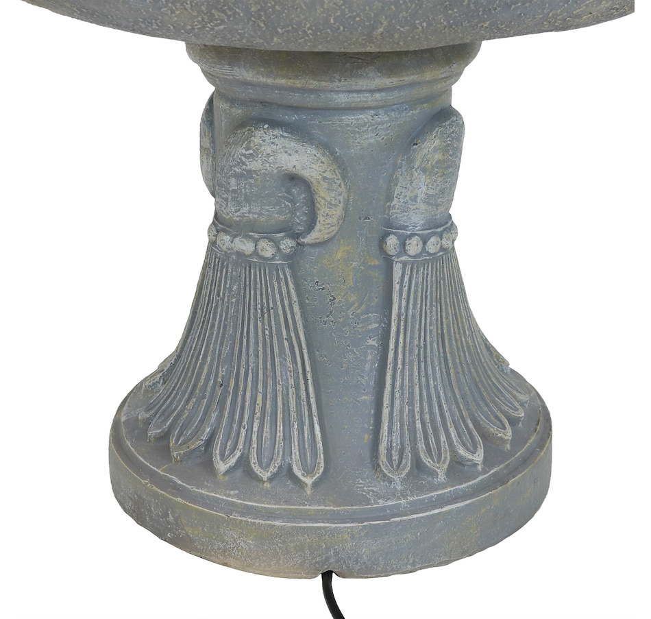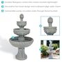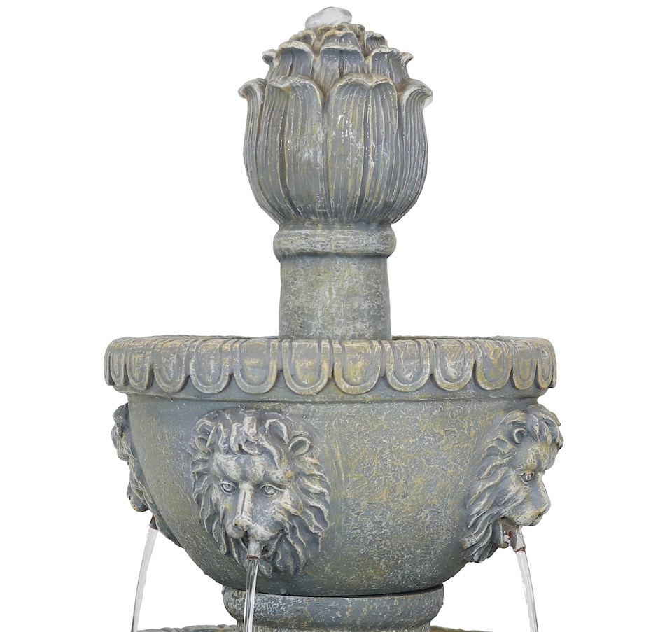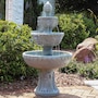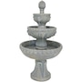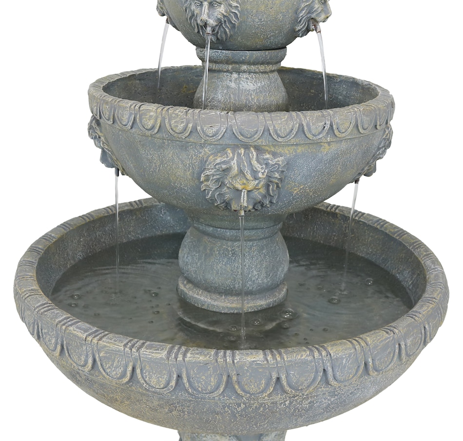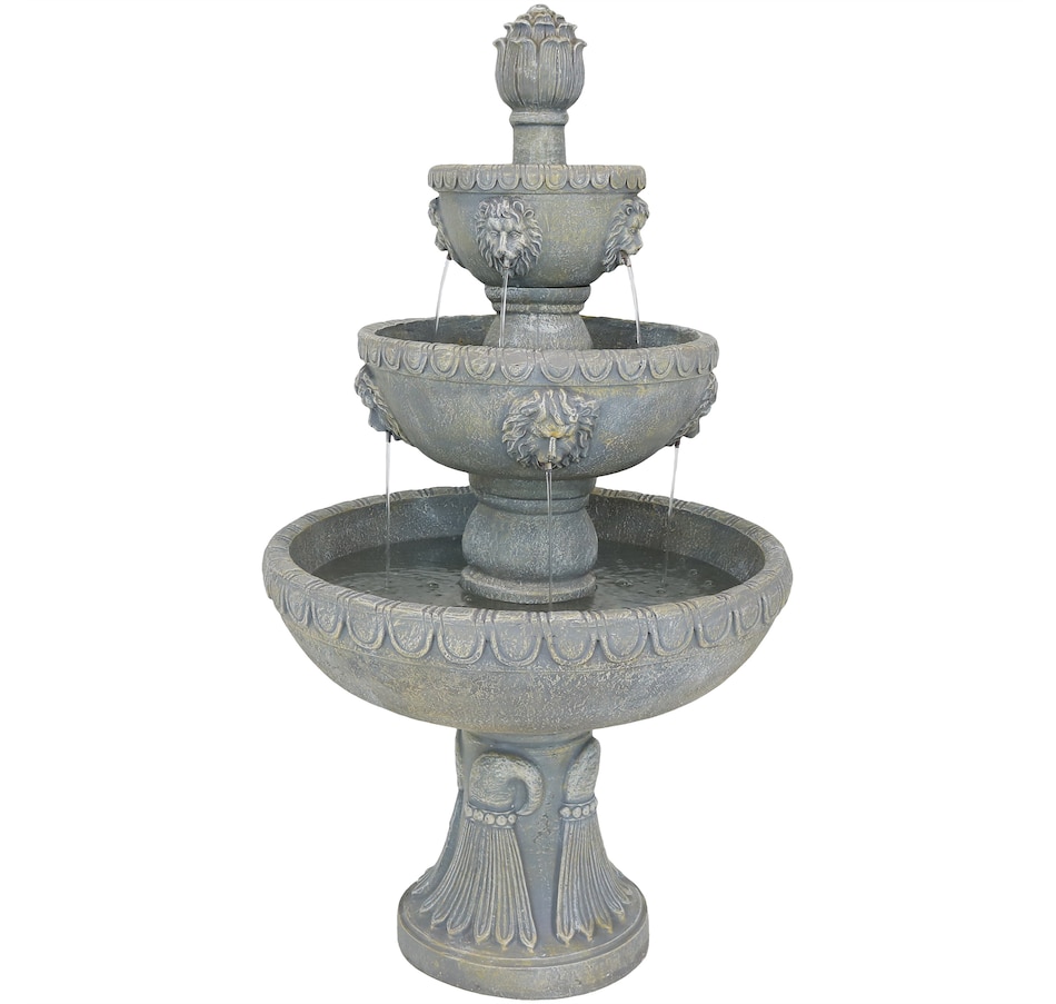 Add a regal yet relaxing touch to any outdoor space with this 3-tier fountain. Designed to look like real stone but much more durable, this fountain is sure to last through many seasons. Whether placed in the yard, garden, patio, deck, or front porch, this masterpiece will get noticed and be appreciated by all who view it. The fountain features 3 tiers. The larger lower tier has a diameter of 29" and is 7.5" deep. The middle tier has a 19.25" diameter and is 6.5" deep and the top tier has an 11.5" diameter and is 5.5" deep. Plus, the gentle sounds of the flowing water down the 3 tiers circulate back to the top effortless to create a soothing atmosphere that is sure to make a statement. Just set where you'd like it to go, fill with water, plug in to a standard electrical outlet, and watch the outdoor space transform into a relaxation hot spot.