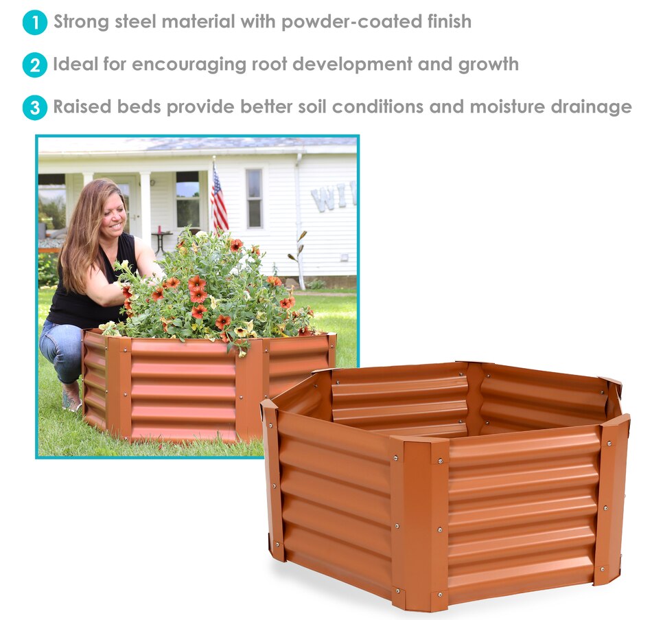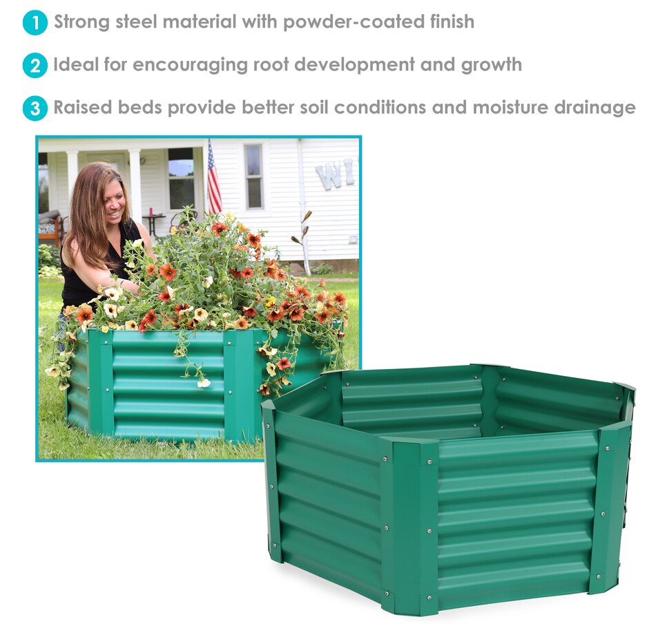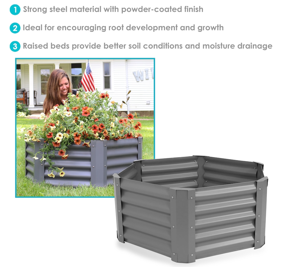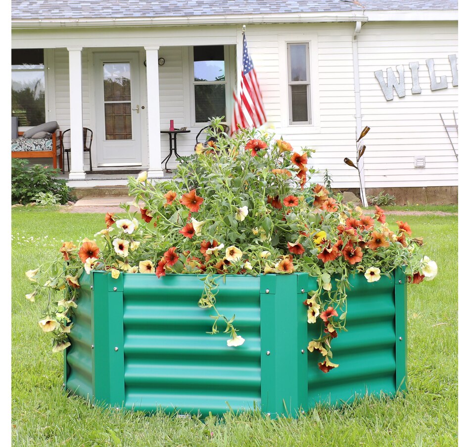 Enhance outdoor gardening with this durable steel raised garden bed, designed to support healthier plant growth and simplify garden maintenance. The elevated structure helps improve soil conditions, drainage, and root development, making it easier to grow vegetables, herbs, and flowers in compact spaces. Its raised height reduces the need for bending and kneeling, offering a more comfortable gardening experience while also helping to deter pests. Crafted from weather-resistant steel, this planter box is built to withstand the elements and resist rust and corrosion over time. The kit includes all necessary components for easy assembly: steel panels, corner connectors, and hardware. Once assembled, simply add soil and begin planting. With its clean lines and modern look, this garden bed adds visual appeal to patios, yards, or greenhouse spaces. Available in multiple color options, it offers both function and aesthetic flexibility for a range of outdoor garden designs.