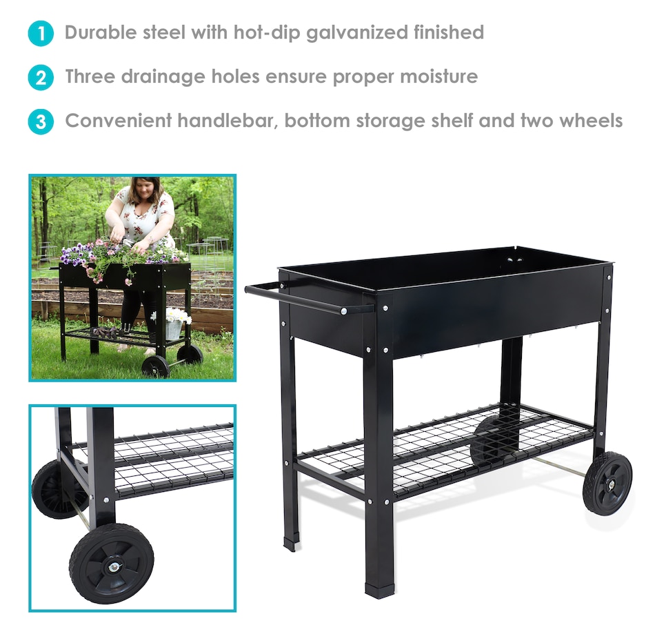 - Rolling raised garden bed with ergonomic handle