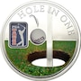 This large pure silver coin features every golfer’s dream shot, the "hole in one". As an innovative and unique feature, the golf hole is represented with an actual opening in the coin, with the golf ball just about to drop into it. This coin is a high quality collectible with the low mintage, large format, and innovative technology. It is also an ideal gift for the avid golfer, and serves as a symbol of good luck.