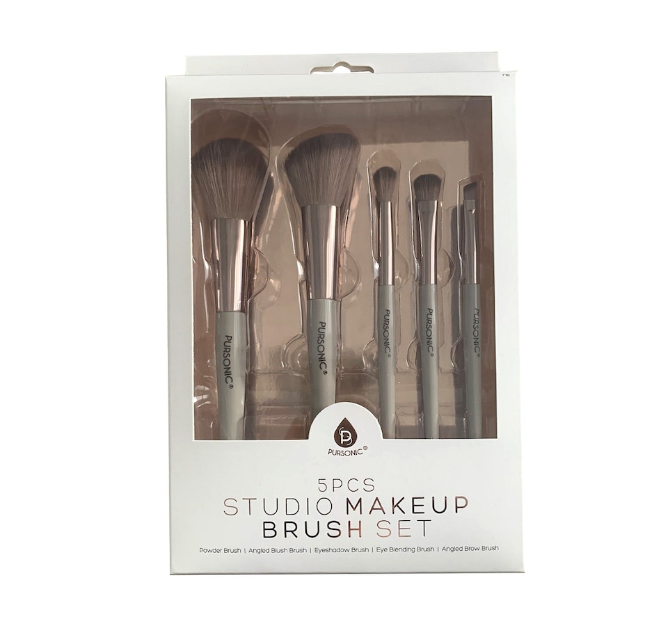 The Pursonic Studio makeup brush set brings a bold pop of style to your everyday routine, simultaneously helping you keep your skin looking flawless with and without makeup. The brushes in the set are made with synthetic bristles that acts as a self-cleaner to help keep them fresh.Features:Set of 5 makeup Brushes pairs functionality with sleek styleEach brush is made with quality synthetic fiber for lasting performanceIncludes brushes for every part of your makeup routineStudded plastic handles in a matte rose gold finish are easy to gripBrown bristles and shiny gold-finish metal accents create a chic look for any countertopModel Number: COG300SL