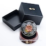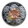 The coin features engraved roses in the background, but the design is all about the large rose gold plated flower that rises up off the coin in the center and the yellow gold bee that actually rotates and circles around the flower as the coin is tilted. The effect is mesmerizing, and a first ever innovation in the world of coins. The reverse image by artist Tony Bianco presents a close view of Canada's most common wild rose and the floral emblem of Alberta, Rosa acicularis. The leaves and flowers of this native shrub fill much of the engraved reverse, where the proof finish is as luminous as a bright summer day. The image is topped by two sterling-silver-cast elements: a rose-gold-plated bloom and a gold-plated bumblebee. Firmly affixed to the coin's surface, the five-petal flower is fully opened to expose the pollen-laden anthers that are a food source for pollinating insects. But the moveable bumblebee adds an interactive twist to this dimensional design; using gravitational force, the "flying" bee is able to circle around the rose whenever the coin is tilted from one side to the other.