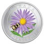 This engraved and coloured coin showcases a beautiful aster sharing its pollen with an intricately detailed bumblebee.