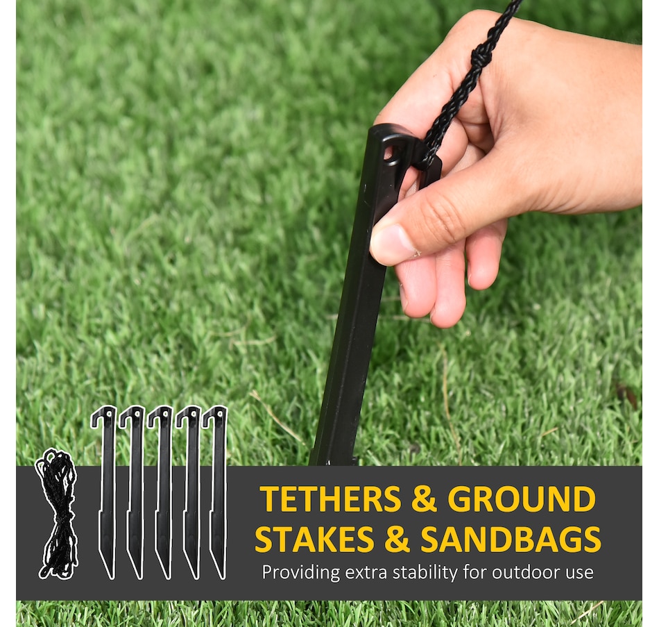 ● Accessories: 5 x Ground Stakes, 3 x 59" L Ropes, 1 x Fan, 2 x Sandbags (0.44 lbs. each);