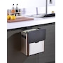 The slim hanging trash can made of quality stainless steel is rust-resistant and easy to clean. The tightly sealed lid effectively contains odors, ensuring your kitchen stays fresh. The slim bin can be hung on either side of cabinet doors with the included hook, mounted onto smooth walls or simply placed on countertops—3 ways to suit your needs. You can either flip up the lid or slide it down for opening, enhancing the convenience during kitchen tasks. The food waste bin features a removable inner bucket, making it easy to clean or carry to the garden compost bin or waste disposal. This slim hanging garbage can is also perfect for bathrooms, toilets, and RVs, offering a space-efficient waste disposal solution everywhere. Wipe clean with a soft, damp cloth and use mild detergent if necessary..The slim hanging trash can made of quality stainless steel is rust-resistant and easy to clean. The tightly sealed lid effectively contains odors, ensuring your kitchen stays fresh..The slim bin can be hung on either side of cabinet doors (up to 0.98" thick) with the included hook, mounted on smooth walls or simply placed on countertops—3 ways to suit your needs.You can either flip up the lid or slide it down for opening, enhancing the convenience during kitchen tasks.The food waste bin features a removable inner bucket with handles, making it easy to clean or carry to the garden compost bin.