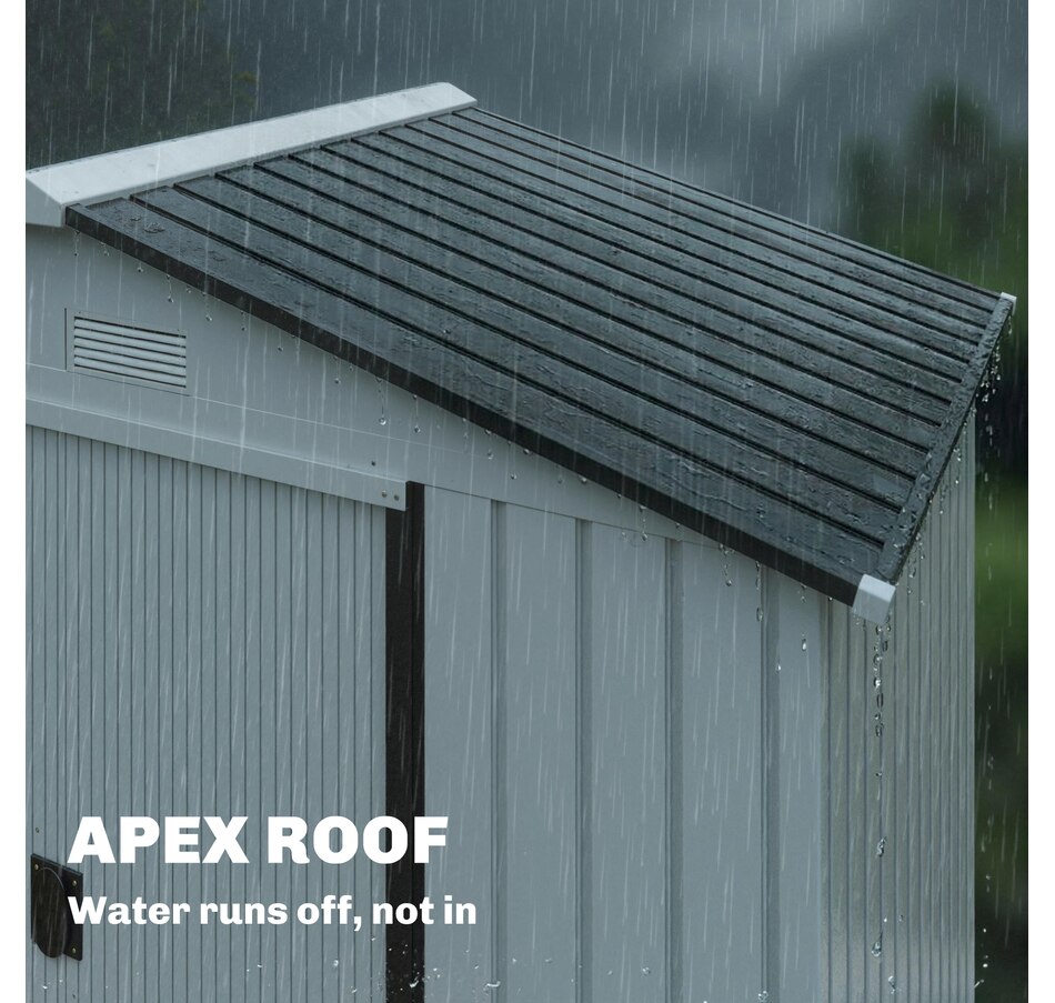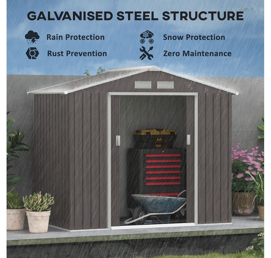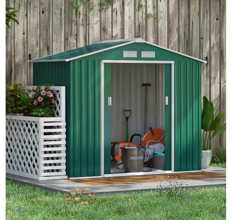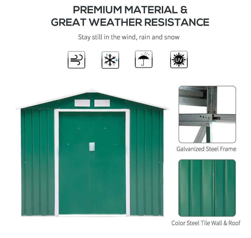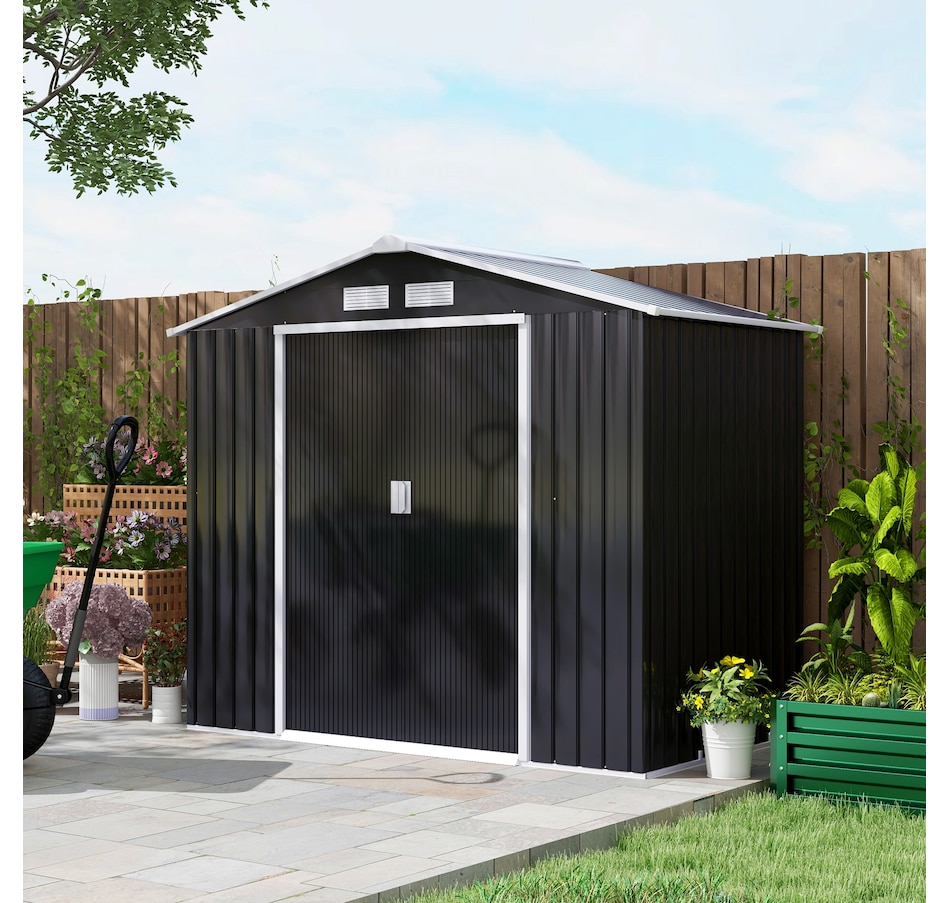 Add storage space at an affordable price with our outdoor garbage storage shed outdoor from Outsunny. A metal garbage shed outdoor has distinct advantages over a traditional wooden model. This metal tool shed is tough and offers lots of protection from hazards such as fire, moisture and pests. Heavy duty construction with reinforced ridged walls, air vents and a steel foundation kit to sit evenly on the ground. Galvanized steel with painted surface for corrosion resistance.