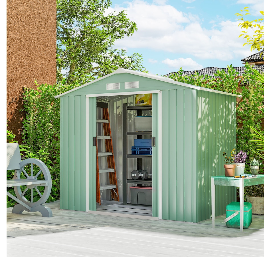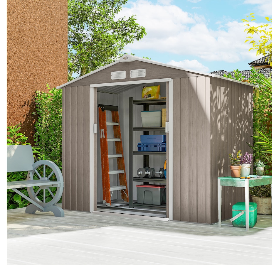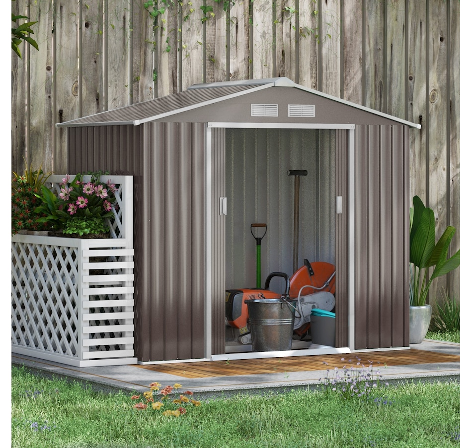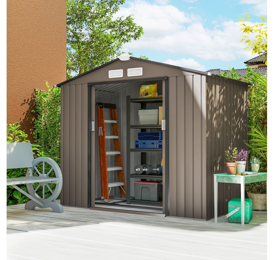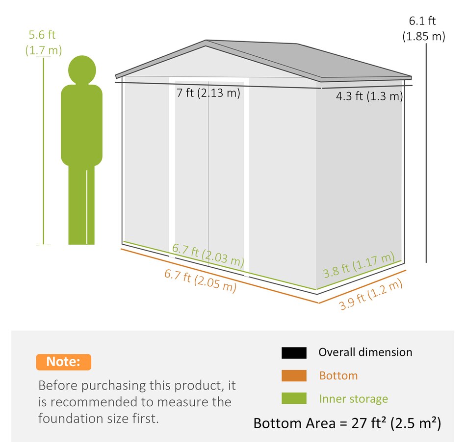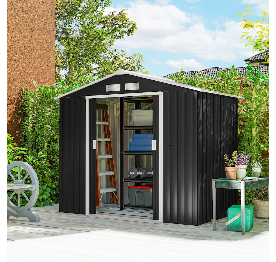 Add storage space at an affordable price with our outdoor garbage storage shed outdoor from Outsunny. A metal garbage shed outdoor has distinct advantages over a traditional wooden model. This metal tool shed is tough and offers lots of protection from hazards such as fire, moisture and pests. Heavy duty construction with reinforced ridged walls, air vents and a steel foundation kit to sit evenly on the ground. Galvanized steel with painted surface for corrosion resistance.