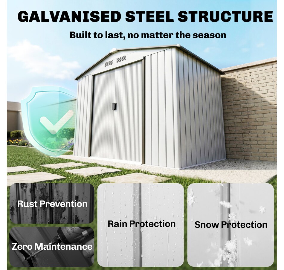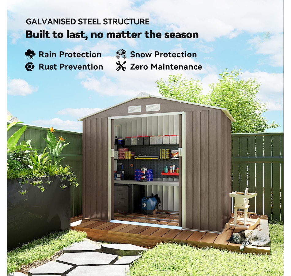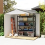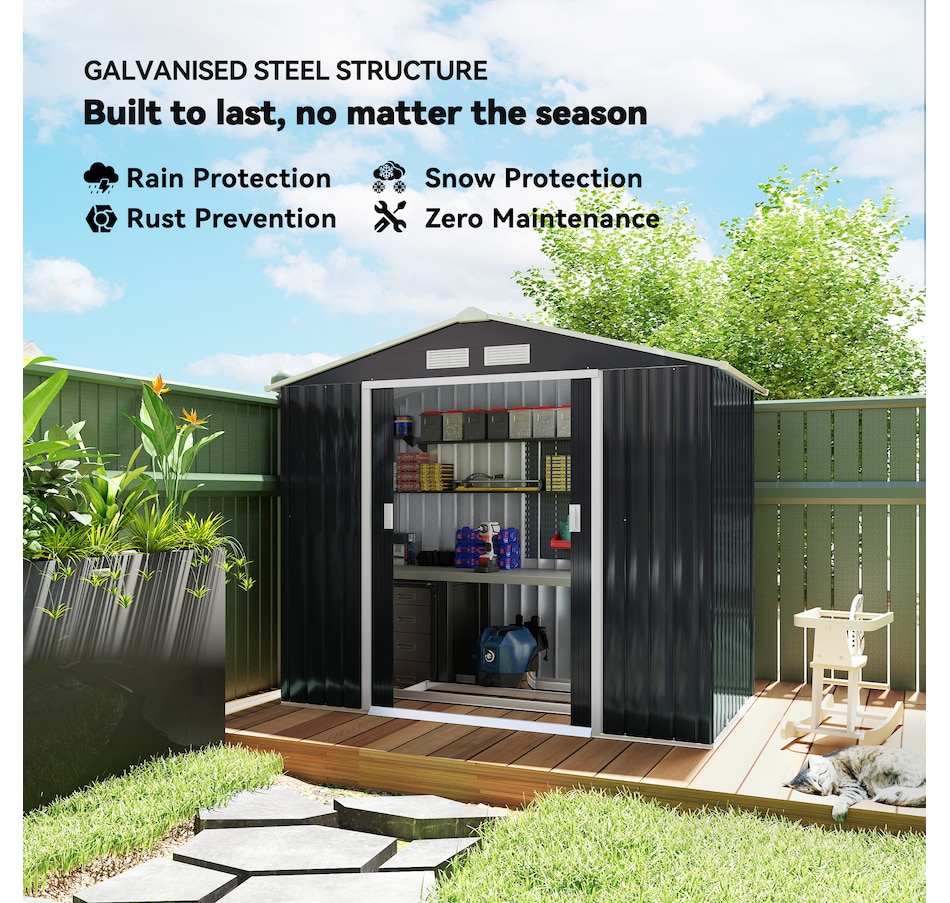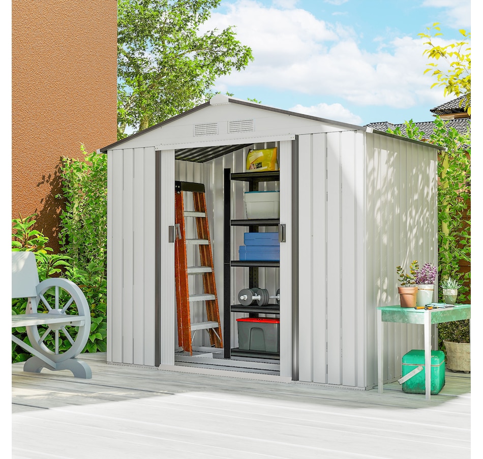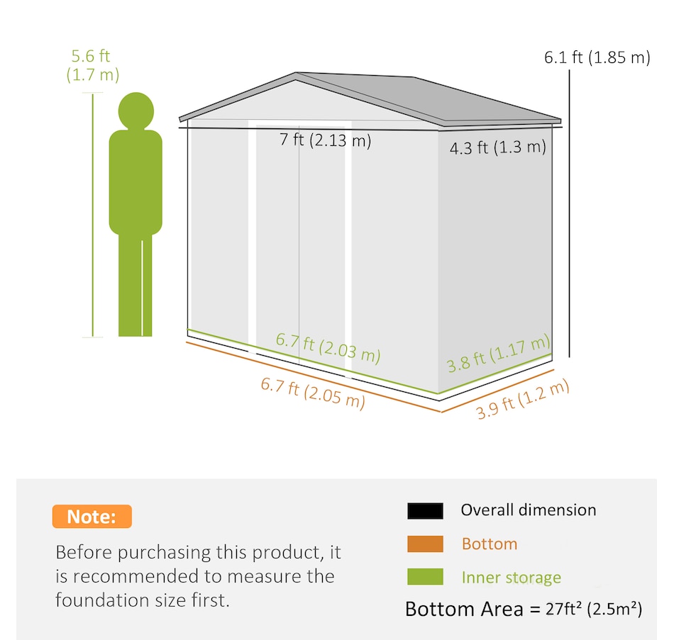 Add storage space at an affordable price with our outdoor garbage storage shed outdoor from Outsunny. A metal garbage shed outdoor has distinct advantages over a traditional wooden model. This metal tool shed is tough and offers lots of protection from hazards such as fire, moisture and pests. Heavy duty construction with reinforced ridged walls, air vents and a steel foundation kit to sit evenly on the ground. Galvanized steel with painted surface for corrosion resistance.