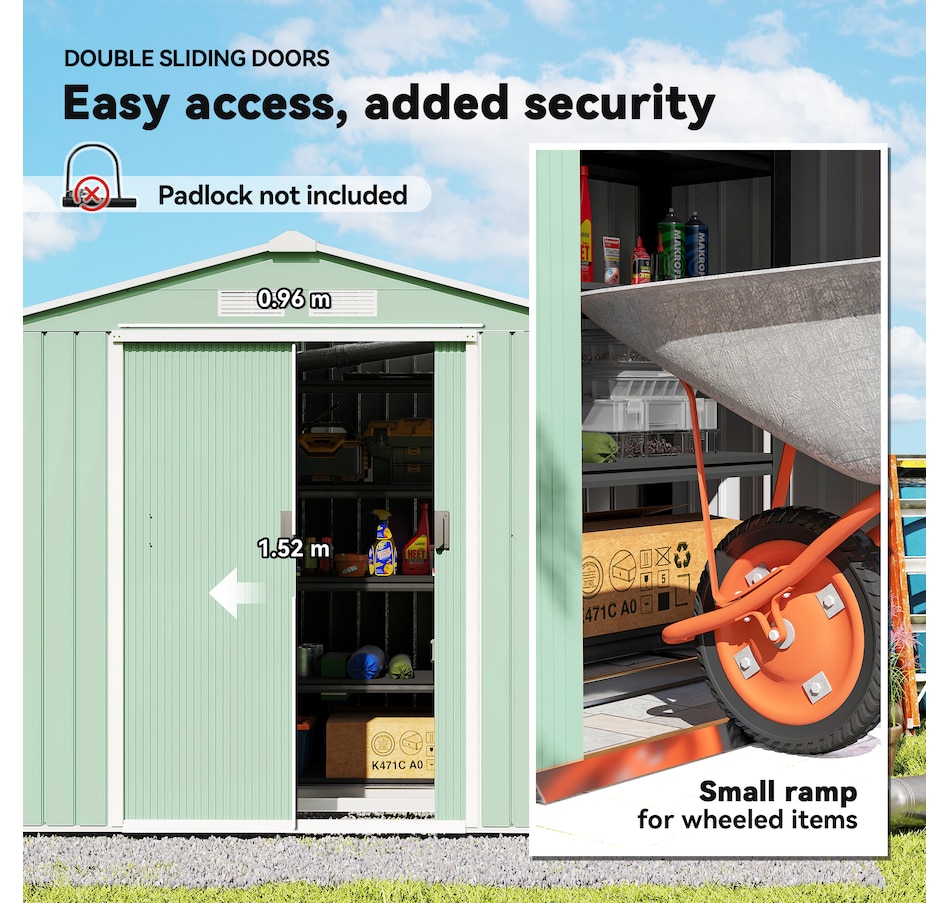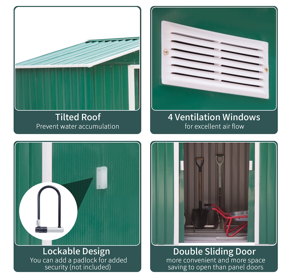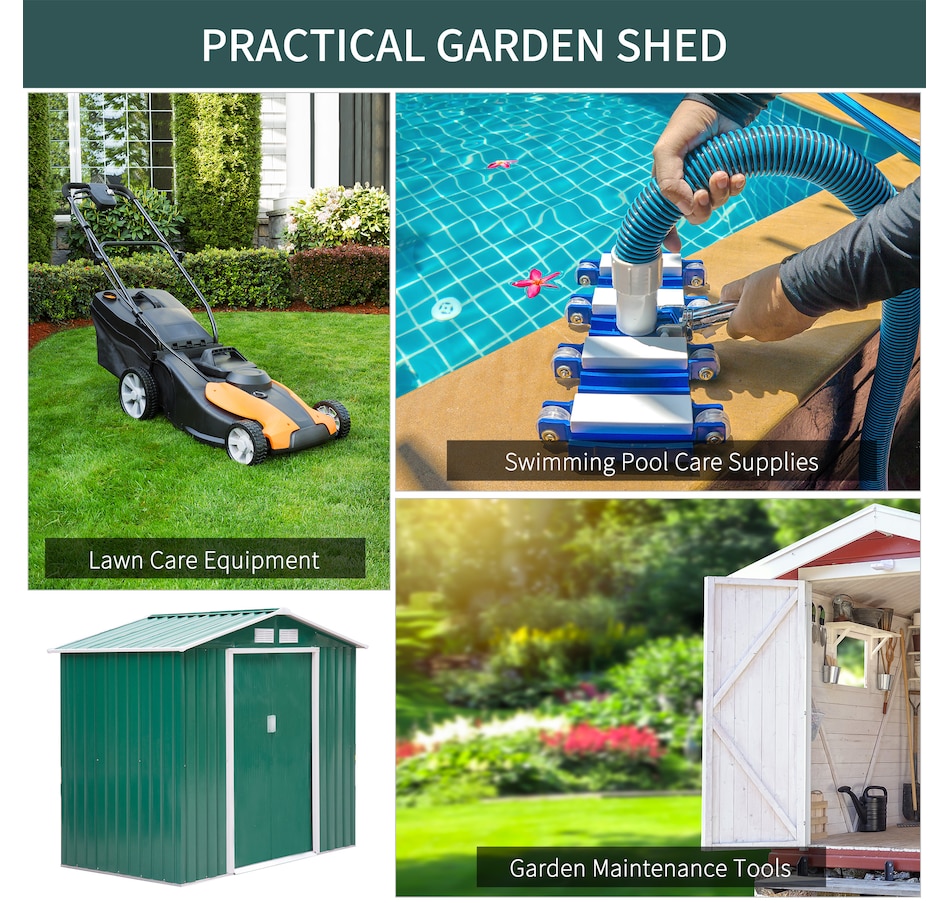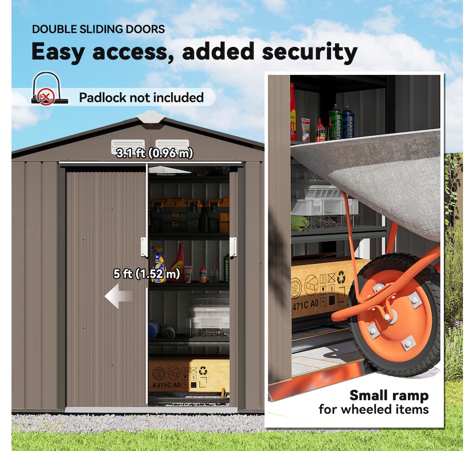 ● Ample storage space for garden tools, lawn care equipment, supplies and more;