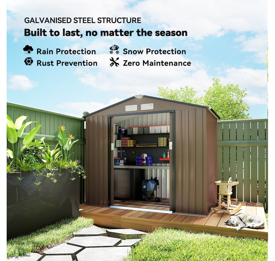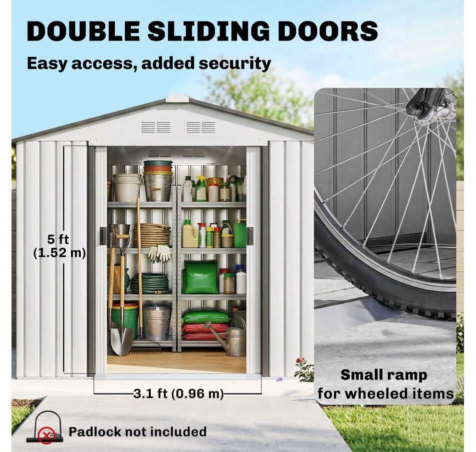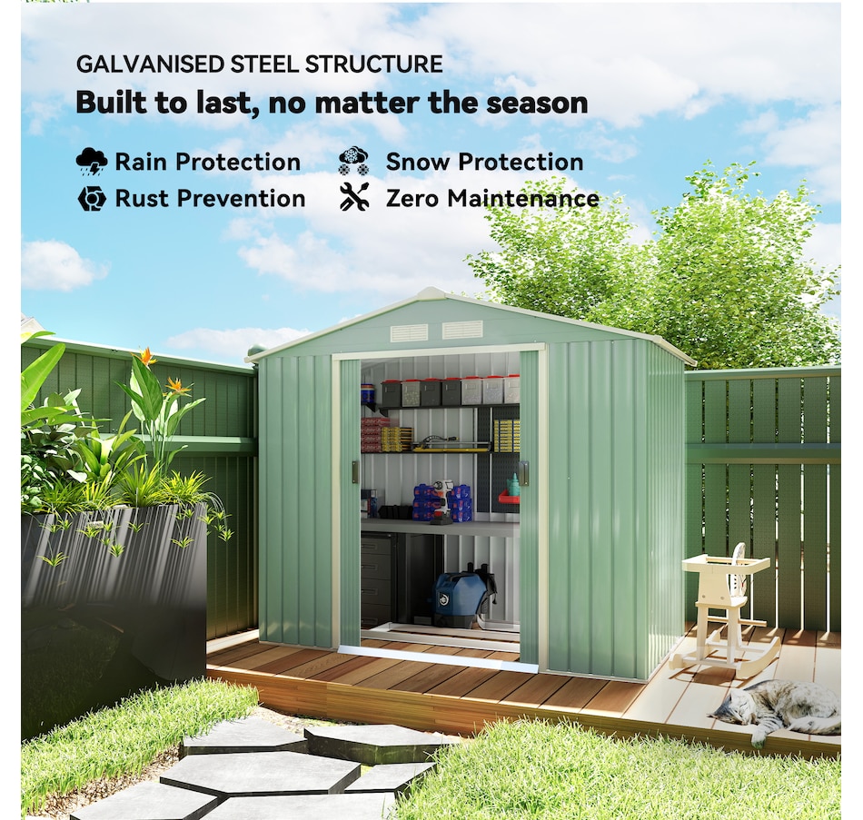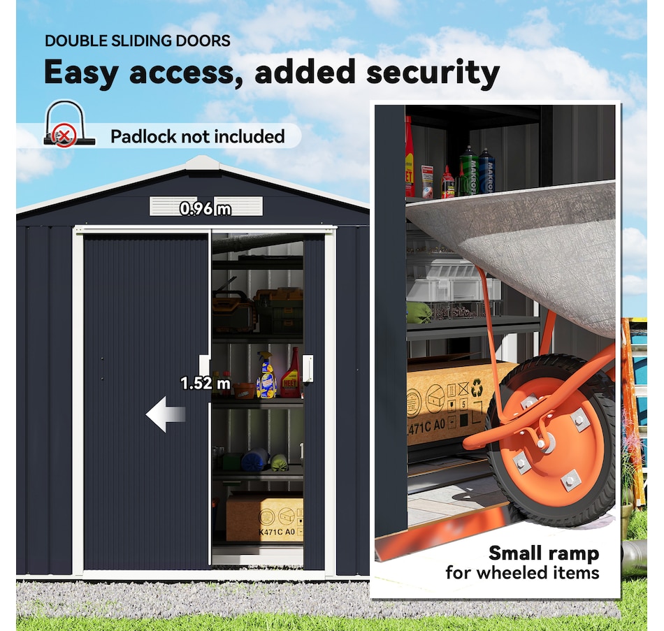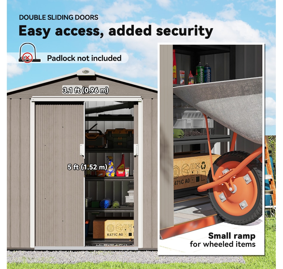 ● Ample storage space for garden tools, lawn care equipment, supplies and more;