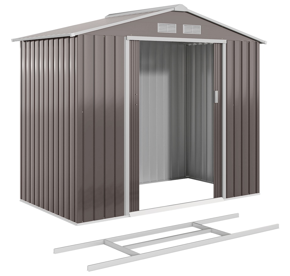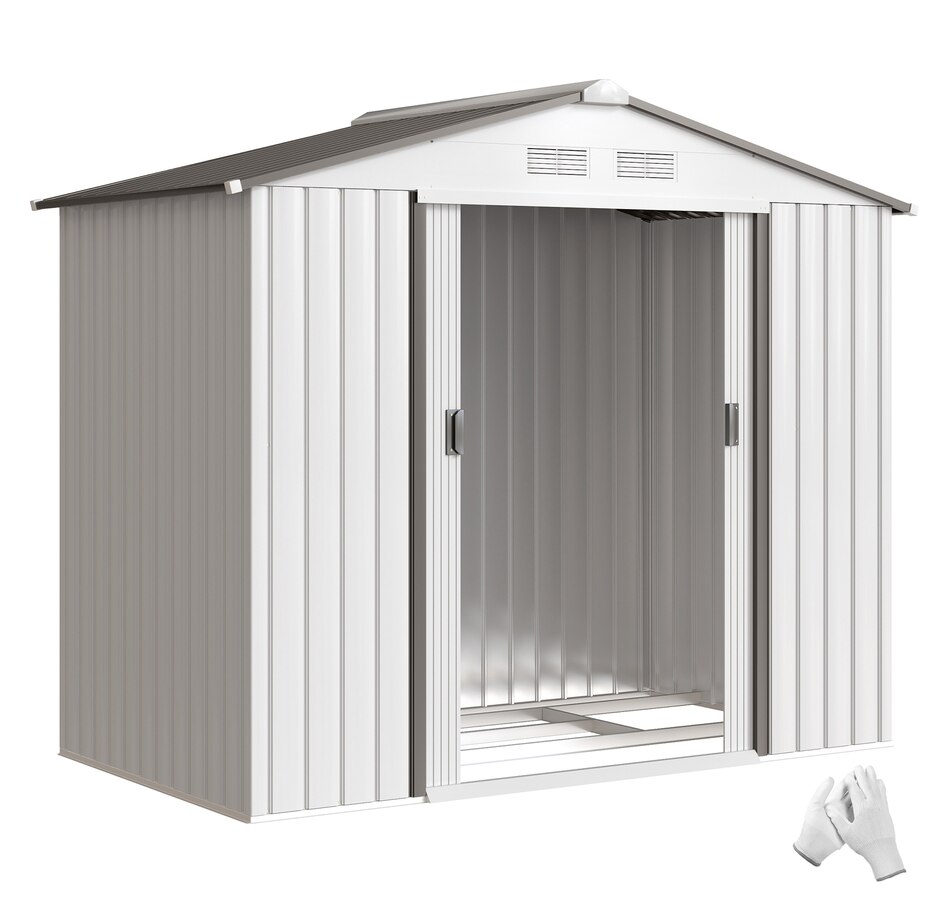 7' x 4' Garden Storage Shed w/ Foundation Kit and Double Doors Silver