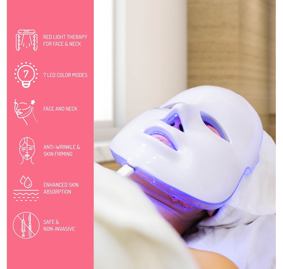 Revolutionize your skincare routine with the 7-in-1 LED Light Therapy Face Mask! Designed to enhance your skin’s natural glow, this high-tech beauty device offers targeted skincare benefits through 7 different LED light modes. Whether you’re looking to reduce fine lines, improve skin tone, or fight acne, this mask is your go-to solution for professional-grade skincare at home.🌟 Why Choose LED Light Therapy?LED light therapy is a scientifically backed skincare treatment used by dermatologists to boost collagen, reduce blemishes, and rejuvenate the skin. Each light color penetrates the skin at different depths, offering a range of benefits for all skin types.✔ Safe & Non-Invasive – No harsh chemicals or UV exposure.✔ Pain-Free & Effective – Delivers results without irritation or downtime.✔ Easy to Use – Just wear the mask and let the light work its magic!🎨 7 Color Modes for Targeted SkincareWith 7 different LED light settings, this mask addresses multiple skin concerns for a customized skincare experience:Red Light – Stimulates collagen production, reduces wrinkles, and enhances skin elasticity.Blue Light – Fights acne-causing bacteria, reducing breakouts and inflammation.Green Light – Evens out skin tone and reduces hyperpigmentation.Yellow Light – Soothes sensitive skin and improves circulation for a healthy glow.Purple Light – Combines red and blue light therapy for anti-aging and acne-fighting benefits.Cyan Light – Calms irritated skin and reduces puffiness.White Light – Penetrates deep into the skin to accelerate skin repair and renewal.💡 Customizable Treatments – Switch between light modes to target different skin concerns as needed!🌿 Premium Quality & Comfortable WearCrafted from medical-grade silicone, this mask is designed for maximum comfort while delivering professional skincare benefits. The ergonomic, lightweight design ensures a snug yet breathable fit, making it perfect for daily use.✔ Soft & Flexible Fit – Comfortable for all face shapes and sizes.✔ Durable & Safe – Made with skin-friendly, high-quality materials.✔ Hands-Free Convenience – Wear it while relaxing, reading, or watching TV.🔋 Rechargeable & Portable – Skincare On the Go!No need for constant battery replacements! The built-in rechargeable battery allows for 2-3 hours of continuous use on a single charge, making it perfect for at-home or travel use.✔ USB Rechargeable – Charge anywhere with ease.✔ Cord-Free & Hassle-Free – Enjoy treatments without being tied to an outlet.✔ Lightweight & Compact – Take it with you for skincare anywhere, anytime.🎠Why You Need This LED Face Mask🔹 Professional-Grade Skincare at Home – Get spa-level treatments without the hefty price tag.🔹 All-in-One Beauty Solution – Treats acne, wrinkles, dullness, and more in one device.🔹 Quick & Easy – Just 10-20 minutes per session for visible results.🔹 A Perfect Gift! – Ideal for skincare lovers, beauty enthusiasts, and self-care advocates.🛒 Upgrade your skincare routine today—glowing, healthy skin is just a light away! ✨