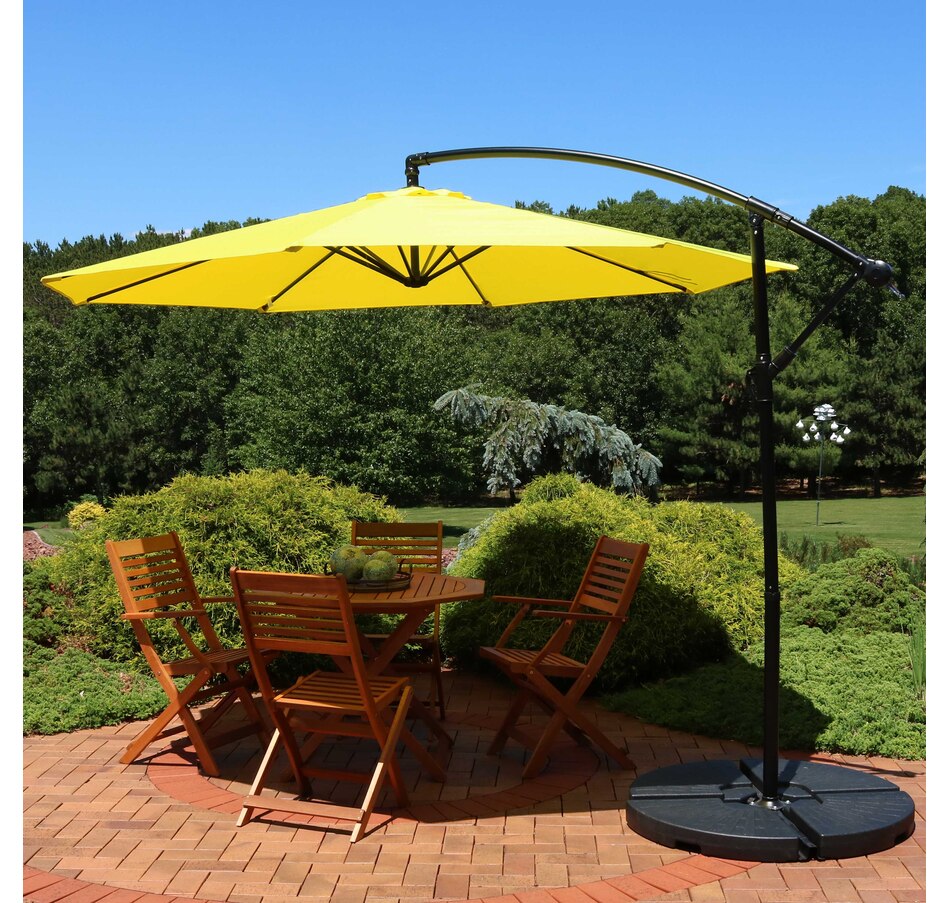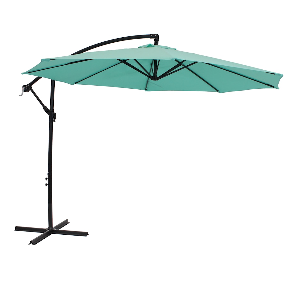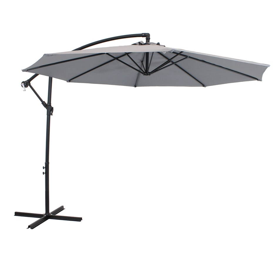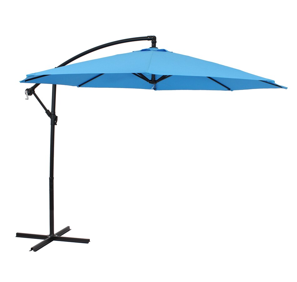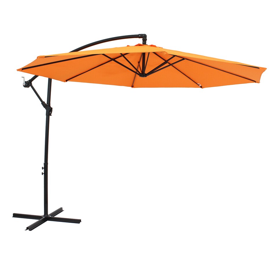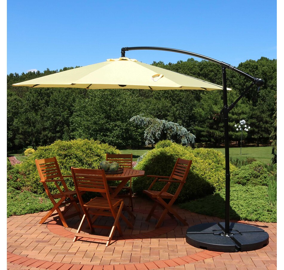 Provide style and shade for outdoor living spaces with this offset cantilever patio umbrella featuring a crank for easy accessibility. Constructed of water-resistant polyester, the umbrella canopy is designed for durability and lasting use. The umbrella features a steel base and pole that provide a sturdy frame for resistance to wind. This outdoor patio accessory is easy to set up and adjust with the cantilever and crank. This umbrella is a great addition to any patio, deck, backyard, or any other outdoor living space to keep cool on hot days. A heavy base is required to properly support the cross base to keep this umbrella securely in place (base not included).