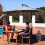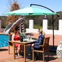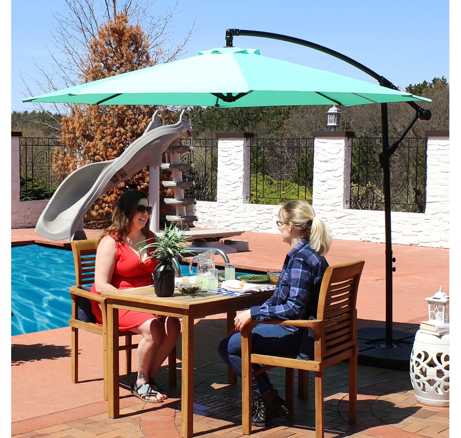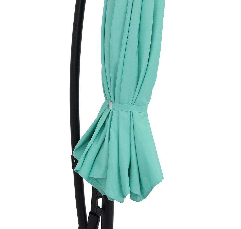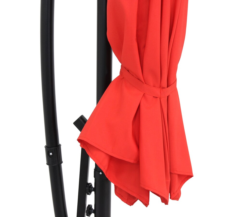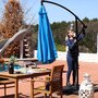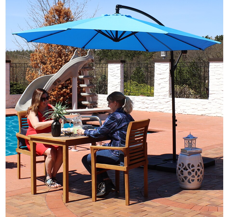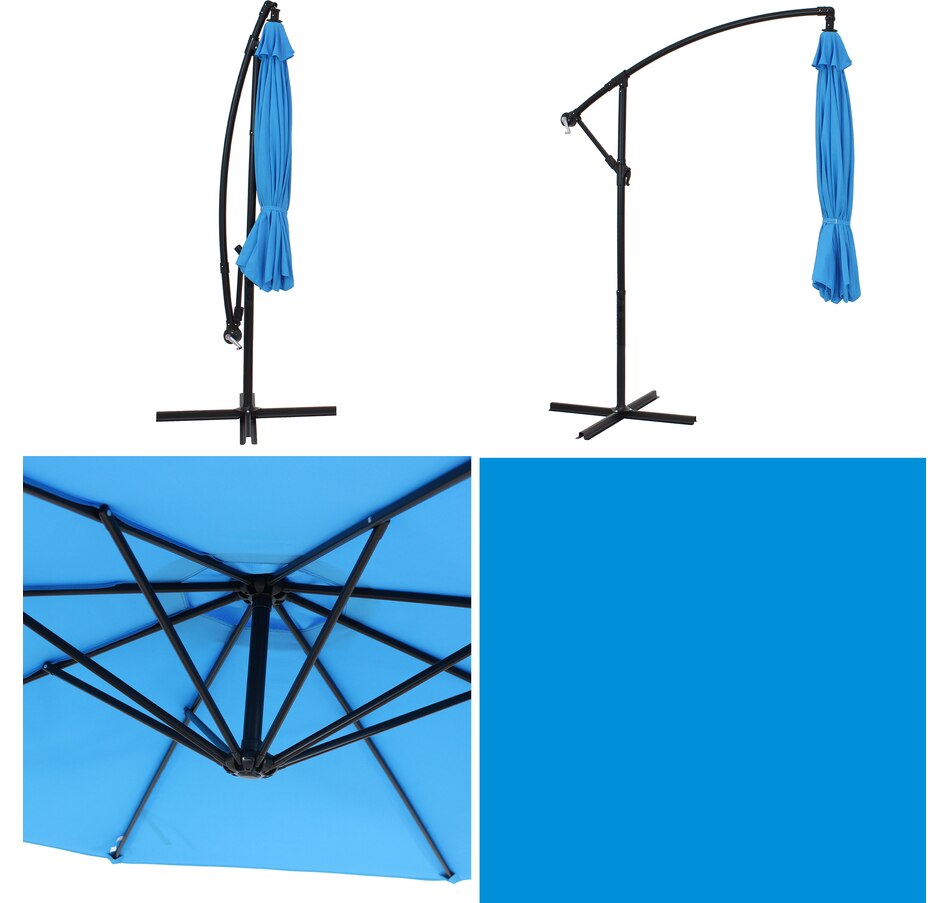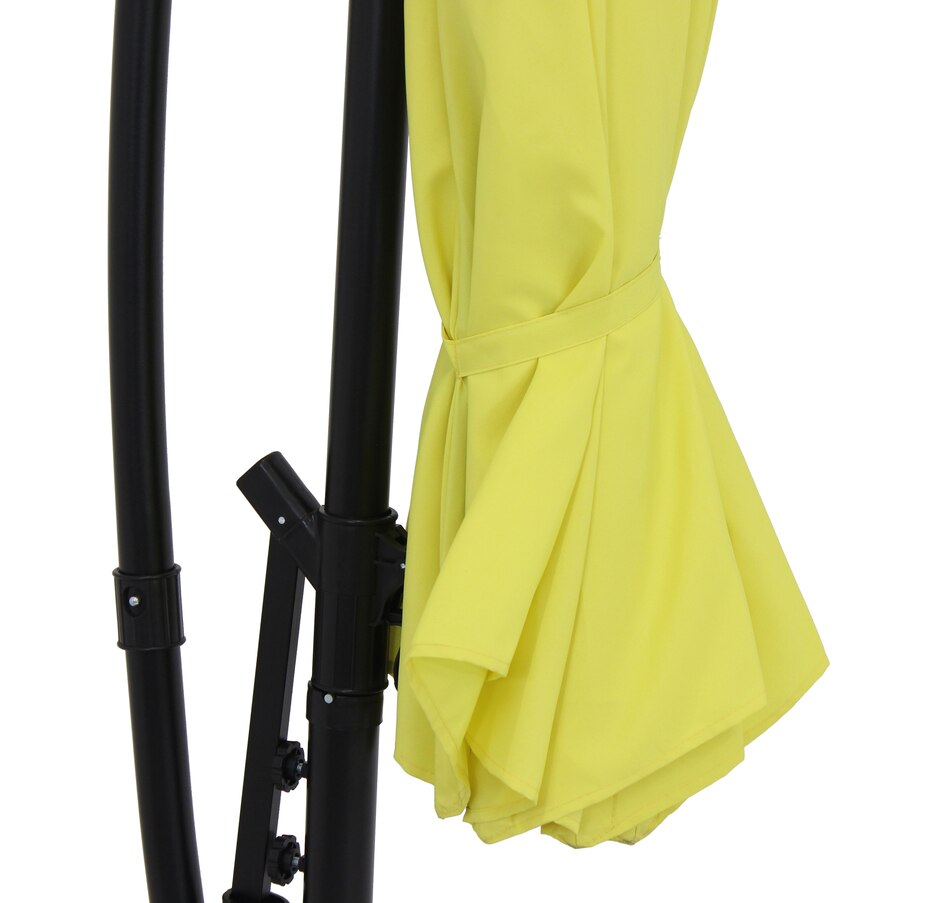 Provide style and shade for outdoor living spaces with this offset cantilever patio umbrella featuring a crank for easy accessibility. Constructed of water-resistant polyester, the umbrella canopy is designed for durability and lasting use. The umbrella features a steel base and pole that provide a sturdy frame for resistance to wind. This outdoor patio accessory is easy to set up and adjust with the cantilever and crank. This umbrella is a great addition to any patio, deck, backyard, or any other outdoor living space to keep cool on hot days. A heavy base is required to properly support the cross base to keep this umbrella securely in place (base not included).
