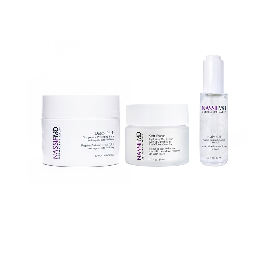 This is a trio of best selling Detox Pads to properly cleanse, exfoliate and prep the skin with Hydro-Gel Serum to improve hydration, tone and texture. The Soft Focus Day Cream is there to instantly brighten and blur imperfections while improving skin texture and hydration over time.