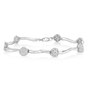 Elegant and timeless, this gorgeous sterling silver link bracelet features 1.0 carat total weight of round diamonds. The tennis bracelet features stations with a cluster of seven illusion set diamonds in our unique miracle-plate setting, which centers each genuine diamond in a mirror-finish, high-polish frame that gives the illusion of a much larger stone. These stations are sandwiched between twisted silver bars. The 7” bracelet fastens with a lobster claw clasp and is crafted of real 92.5% sterling silver that has been electro-coated with genuine rhodium (a platinum-family metal), ensuring it will keep a tarnish-free shine for years to come. This classic, slender tennis bracelet makes a great gift for any special occasion! Whether worn for daytime glamour or evening sparkle, this bracelet is gorgeously versatile.