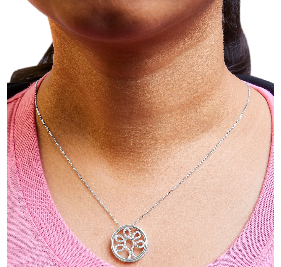 Crafted from radiant .925 sterling silver and adorned with a whisper of natural diamonds weighing a total of 1/10 carat, this necklace is a treasure. Its circular frame cradles the revered tree of life motif, symbolizing growth, strength, and eternal beauty. The diamonds, with their I-J color and I3 clarity, sparkle subtly, reflecting life's natural imperfections and beauties. Rhodium plating enhances the silver's brilliance and ensures lasting wear. An 18-inch cable chain, secured with a dependable lobster claw clasp, promises a perfect fit. This piece is not just jewelry; it's a daily reminder of resilience and connection, making it an ideal gift for both the style-conscious and the sentimentally oriented.
