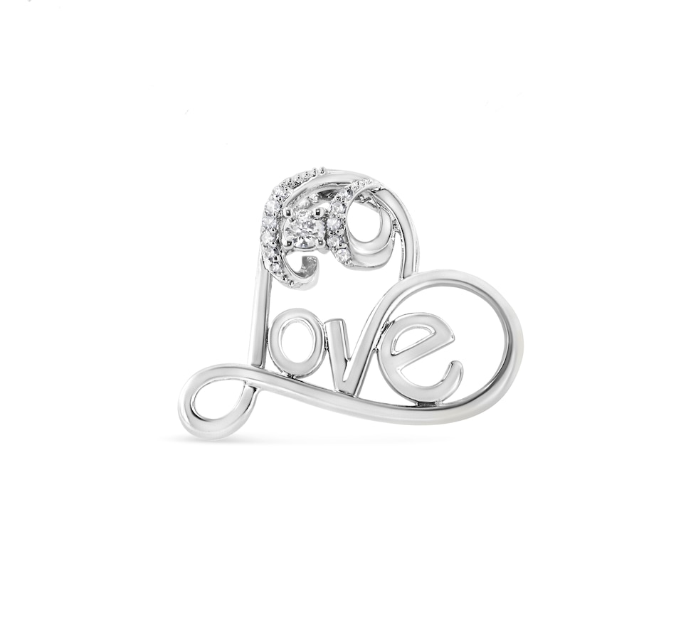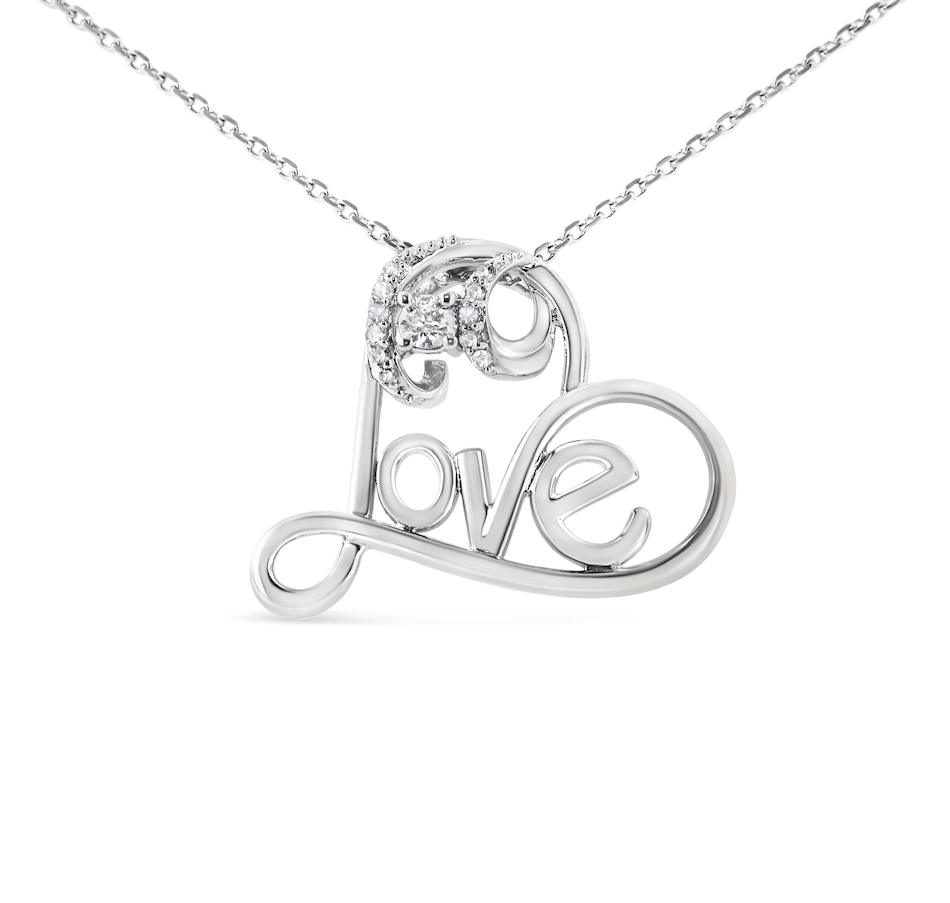 Celebrate someone you love with this stunning diamond heart pendant. This diamond necklace features an open heart design with the outside arch of the heart forming a cursive L as the beginning of the word Love spelled inside the heart. The second curve of the heart makes up one side of the V. At the top of the heart are two curls studded with diamonds. The pendant comes on a box chain necklace with a spring ring clasp. The contemporary yet classic 18"" box chain complements any neckline beautifully. This authentic design is crafted of real 92.5% sterling silver that has been electro-coated with genuine rhodium (a platinum-family metal), ensuring it will keep a tarnish-free shine for years to come. Both pretty and personal, this romantic diamond heart pendant necklace is sure to radiate romance. This sweet necklace makes a perfect Valentine's Day gift, or as a way to remember someone close to your heart. It's a classic and feminine piece she'll want to show off every day.