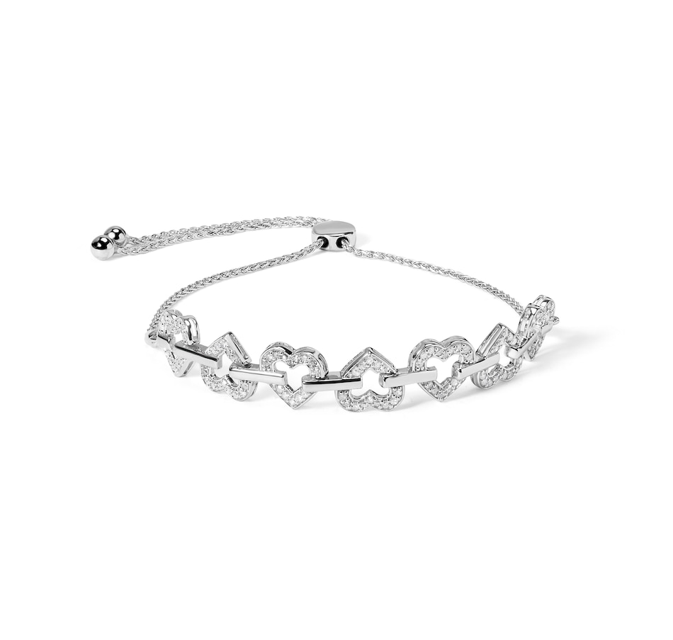 .925 Sterling Silver 1/2 Cttw Diamond Alternating Heart Link Adjustable Bolo Bracelet (I-J Color, I3 Clarity) - 4" to 10" Inches