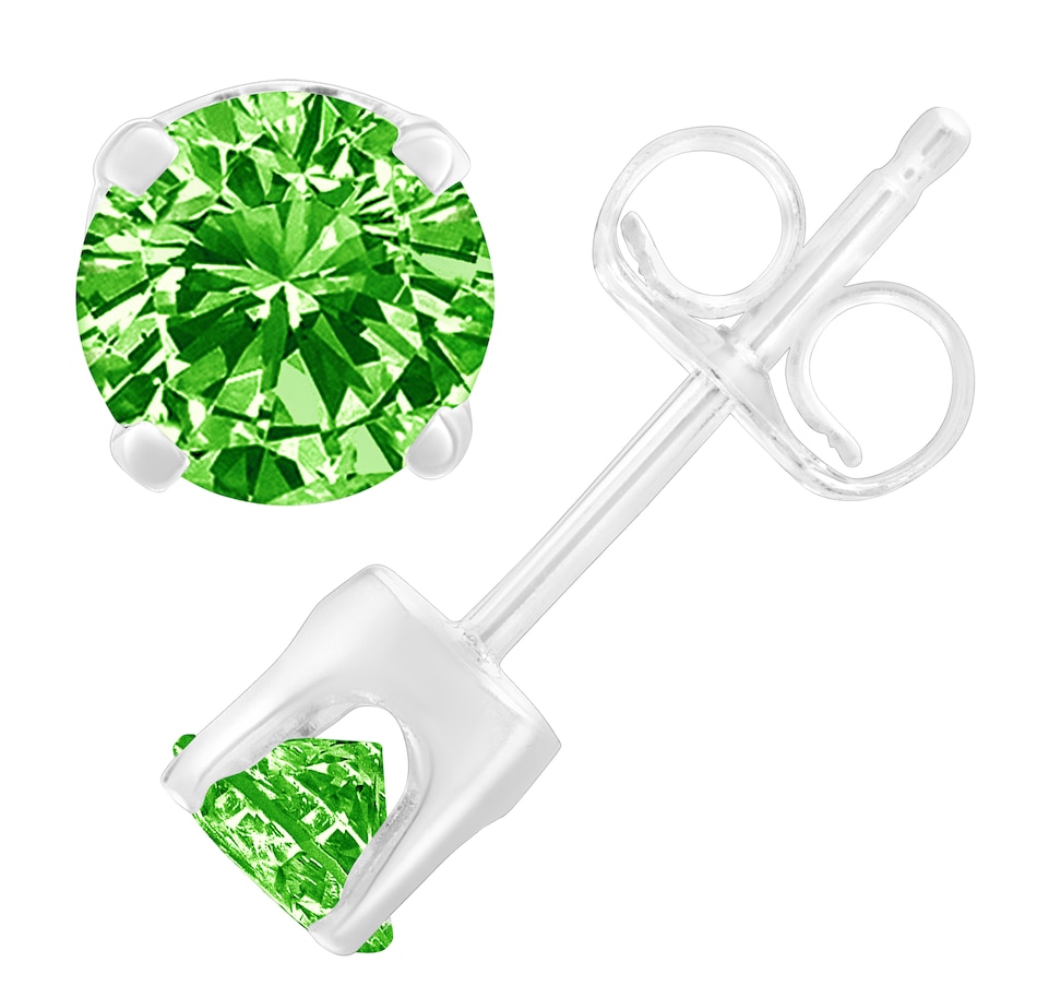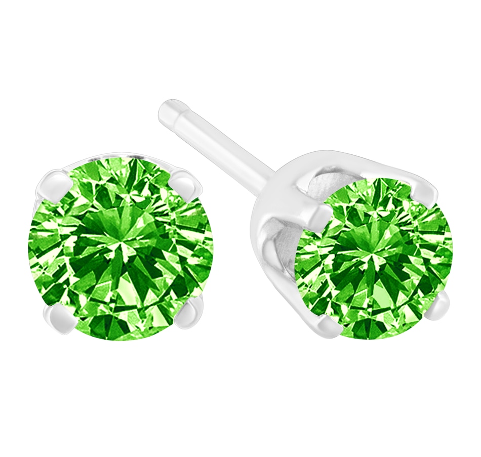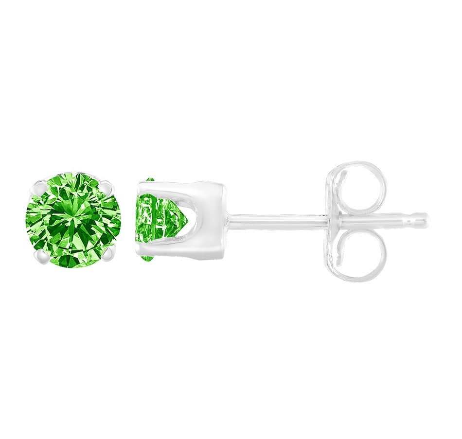 Celebrate any occasion with these classic shimmering solitaire diamond stud earrings. Fashioned in genuine .925 sterling silver, each earring showcases a sparkling color treated round cut diamond solitaire. They come in your choice of fancy blue and fancy green color. Dazzling with a bright polished shine, these post earrings secure comfortably with friction posts and butterfly backs. This authentic design is crafted of real 92.5% sterling silver that has been electro-coated with genuine rhodium (a platinum-family metal), a precious metal that will keep a tarnish-free shine for years to come. These classic earrings make a great gift for any special occasion! Whether worn for daytime glamour or evening sparkle, these studs are gorgeously versatile. Coordinate these earrings with your favorite diamond necklace or other diamond jewelry to create a complete elegant ensemble.