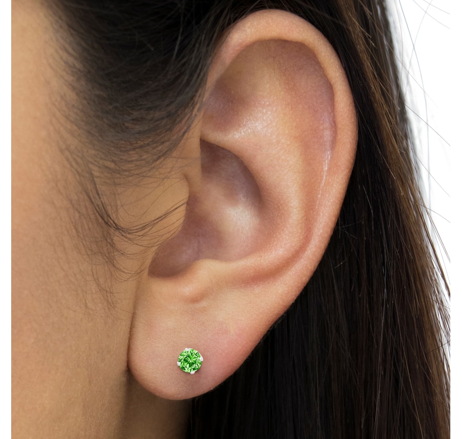 • Diamond 1 | Clarity: I2-I3, Color: Green, Count: 2, Cut: Very Good, Origin: Natural, Setting: Prong, Shape: Round, Total Carat Weight: 0.2, Treatment: Color treated