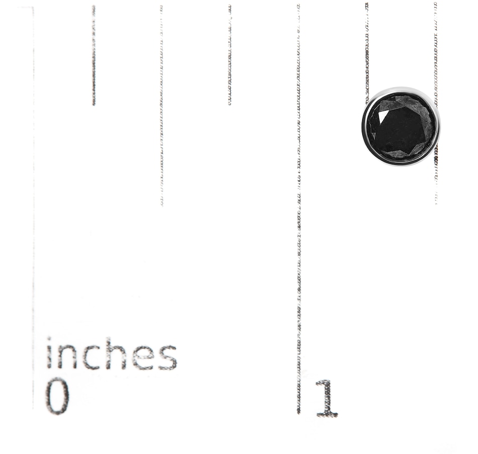 - Diamond 1 | Clarity: I2-I3, Color: Black, Count: 2, Cut: Good, Origin: Natural, Setting: Bezel, Shape: Round, Total Carat Weight: 3, Treatment: Color treated